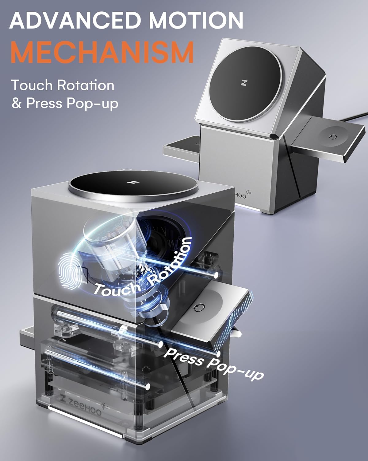 ZEEHOO 3 in 1 Charging Station for Apple, iPhone Mag-Safe Charger, Qi2 Certified, Rotating Wireless Charger Stand for iPhone 16,15,14,13,12 Series, Apple Watch, AirPods (USB-C Charger Included)