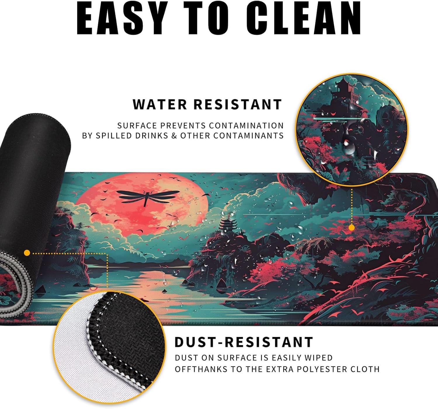 Japanese Desk Mat Riverside Full Moon Desk Pad Psychedelic Mlarge Mouse Pad Dragonfly Gaming Mousepad Extended XL Keyboard Pad 31.5 x 11.8 in Laptop Computer Mouse Keyboard Mat for Office Desk Decor