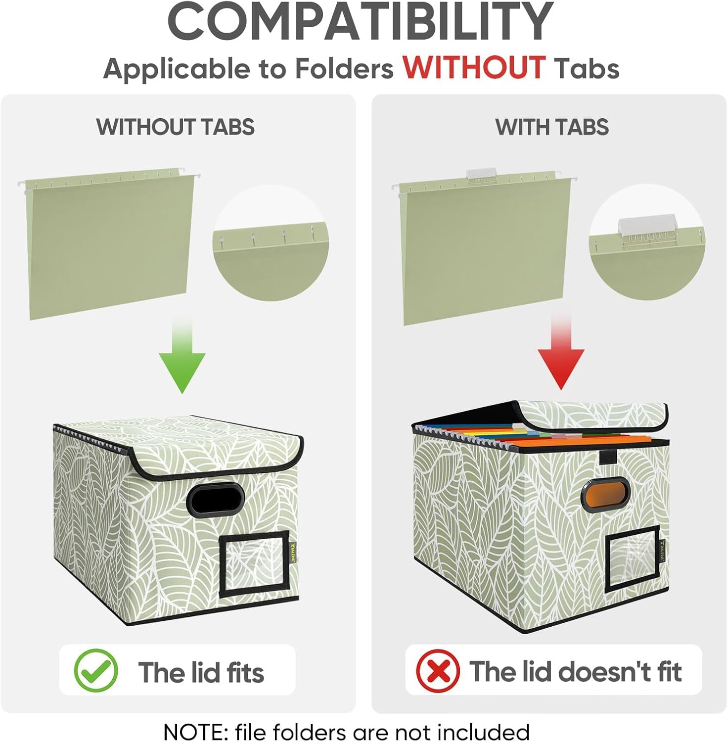 BALEINE File Organizer Box with Lid, Collapsible File Folder Organizer with Plastic Slide, Hanging File Folder Box for Office Document Storage (2 Pack, Antique Foliage)