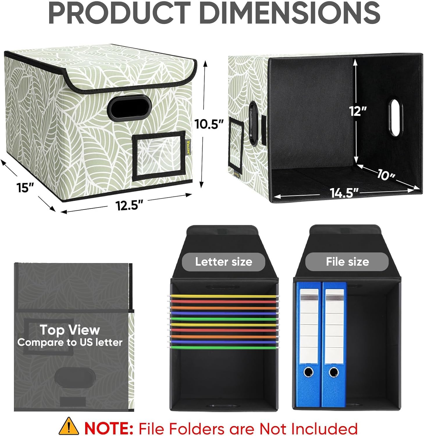 - [DURABLE MATERIAL] The outer layer of our filing box is crafted from high-quality polyester fabric and reinforced with thick cardboard in the middle. This construction ensures that the box maintains its shape and provides better bearing capacity for important documents and files. Its textured appearance can also serve as a stylish decorative element in any office or home.