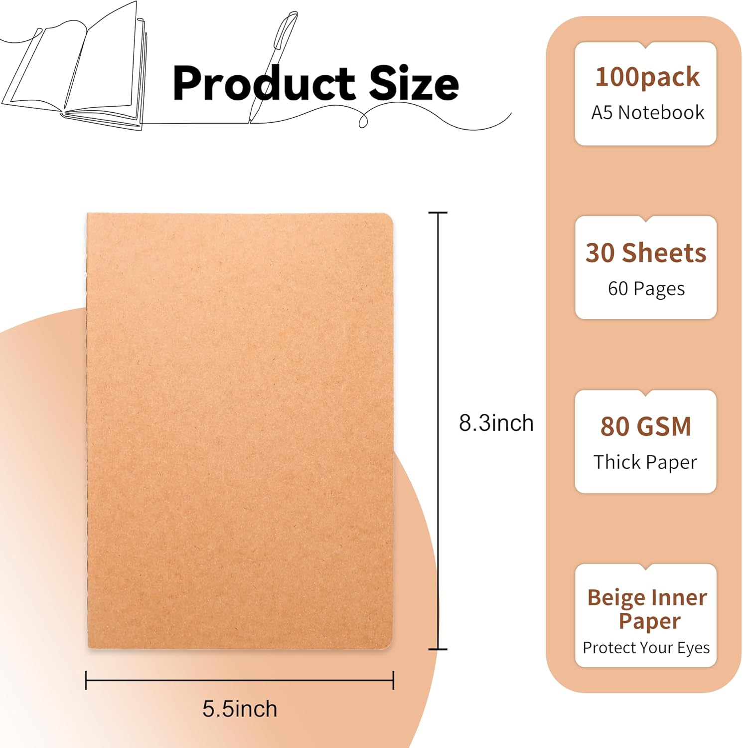 - Color : Blank inner pages-100 PCS