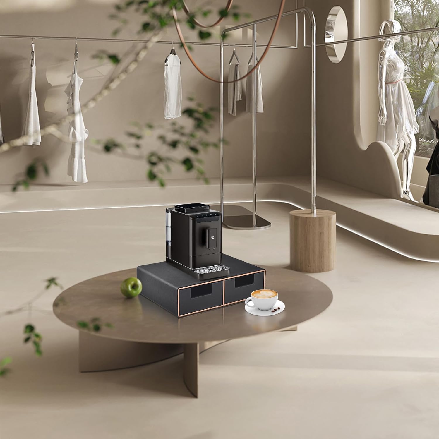 - Coffee Brewer K Cup/Coffee Pod Holder:Small coffee maker Holder with 2 drawers for small/large pods,K-cups holder,tea potor holder,or as other kitchen accessories machine storage stand shelf.