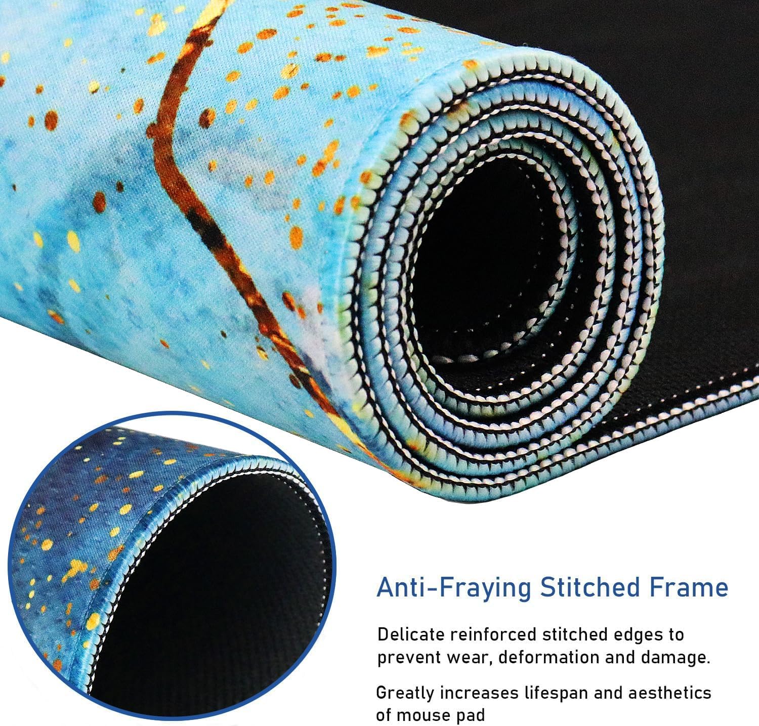 Large Mouse Pad with Stitched Edges, (35.4X15.7In) Durable Non-Slip Natural Rubber Base, Waterproof Computer Keyboard Pad Mat for Esports Pros/Gamer/Desktop/Office/Home, MarbleBlue
