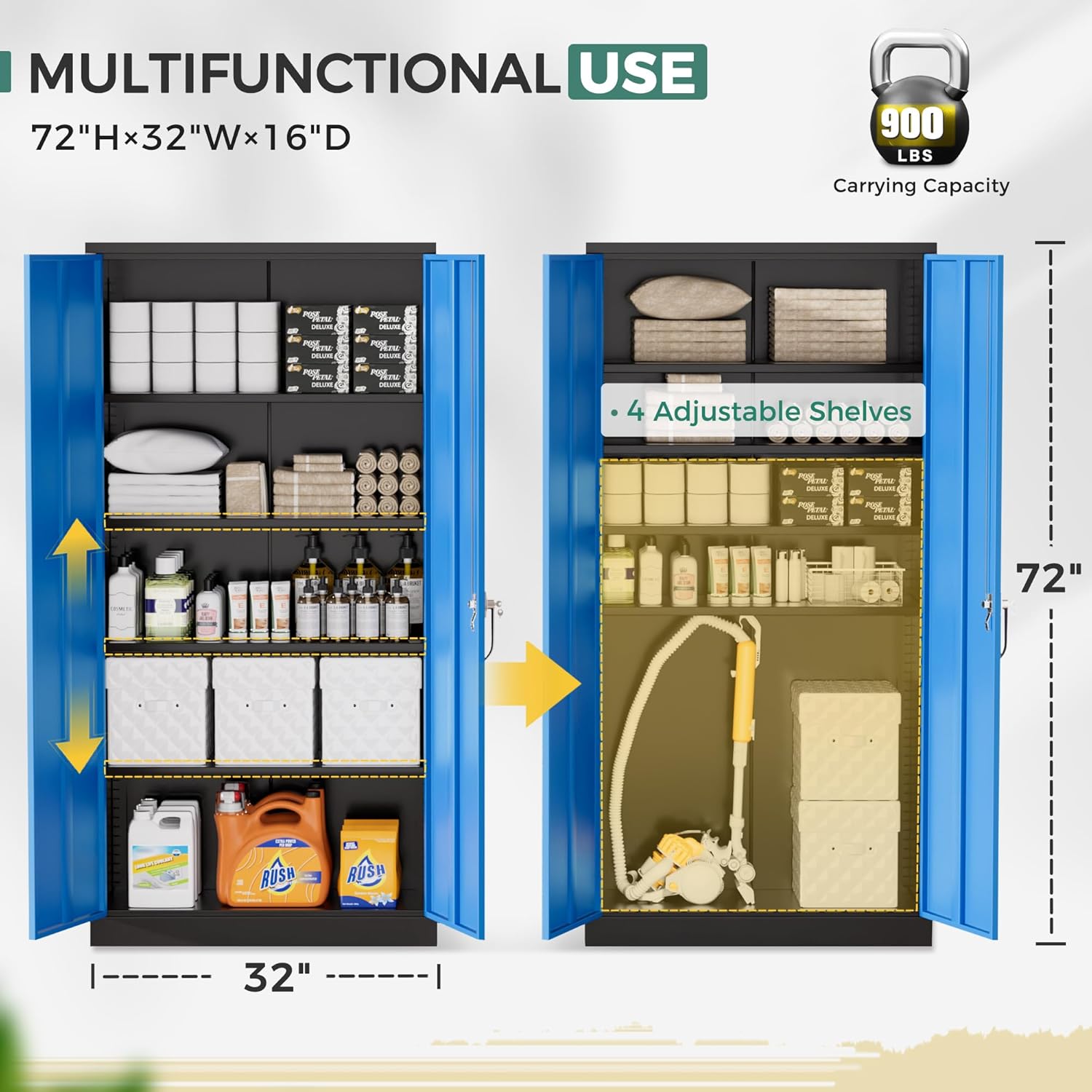 Greenvelly Metal Garage Storage Cabinet, 72" Tall Steel Storage Cabinets with 2 Doors and 4 Adjustable Shelves, Metal Tool Cabinets, Locking File Cabinet for Home Office, Garage, School (Black Blue)