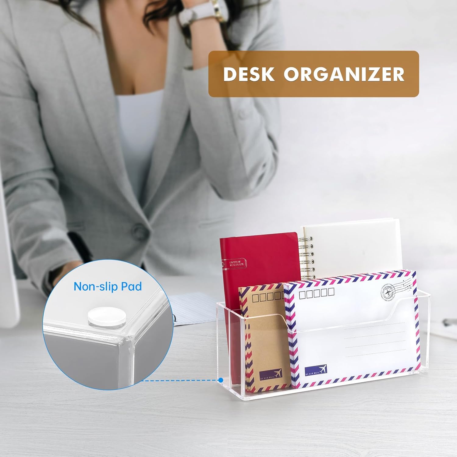 - 【CLEAR ACRYLIC】- This mail organizer for desk is made of acrylic, transparent and intuitive, sturdy and durable. You can directly see your unpaid bills. It goes perfectly with contemporary style.
