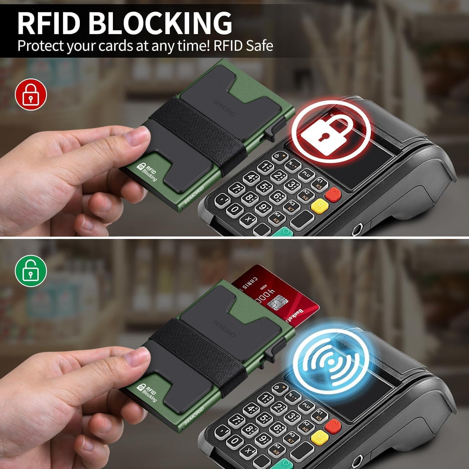 - π RFID & NFC BLOCKING: Advanced aluminium technology protect your cards from unauthorized and contactless scanning. Stop thieves from cloning your bank cards and prevent data theft.