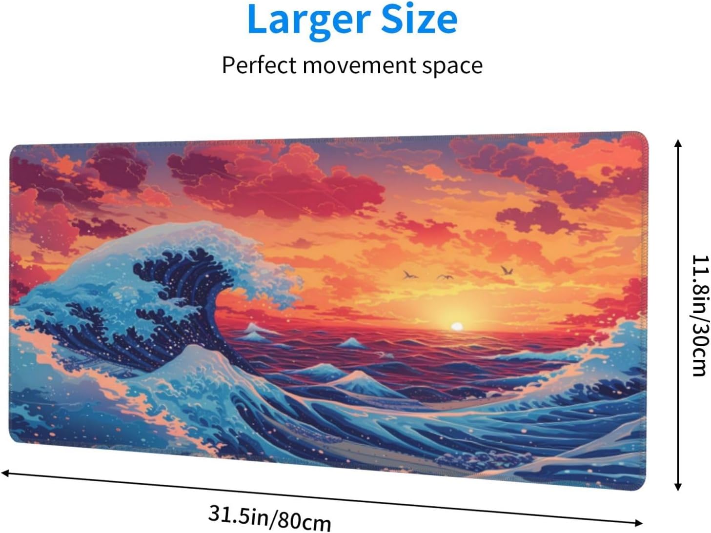 Gaming Mouse Pad Desk Pad,Extended Big Mouse Pad,31.5x11.8 Inch Long Computer Keyboard Mouse Mat Mousepad with 3mm Non-Slip Base and Stitched Edge for Gaming and Office⦠(Sunset Wave)