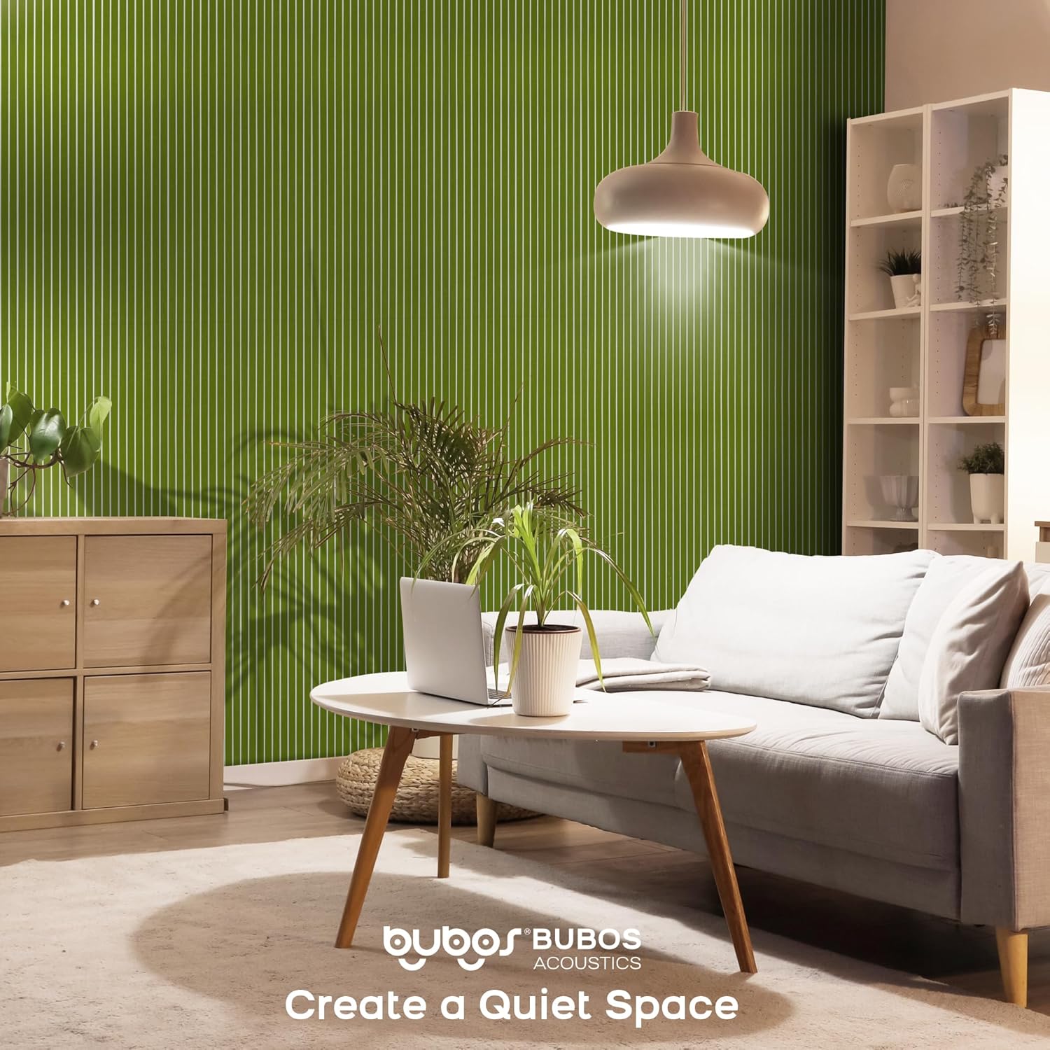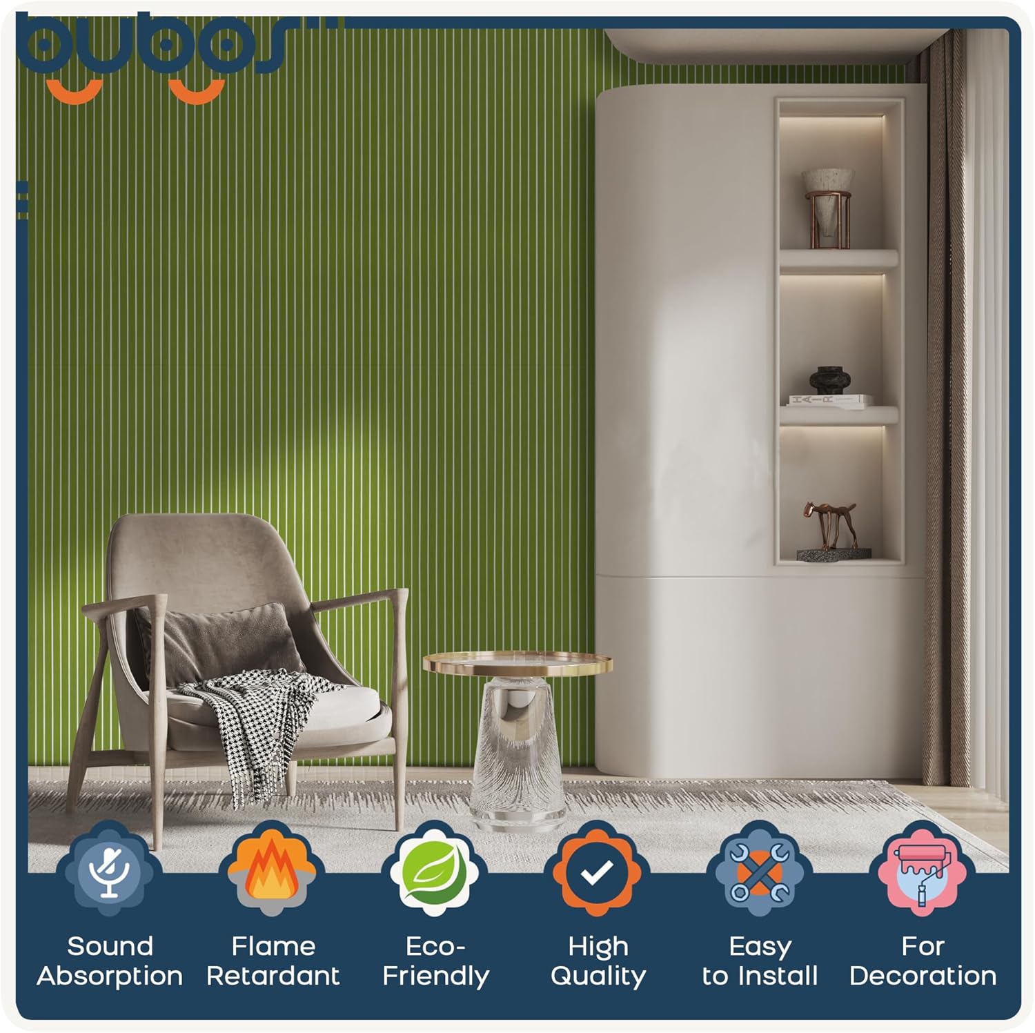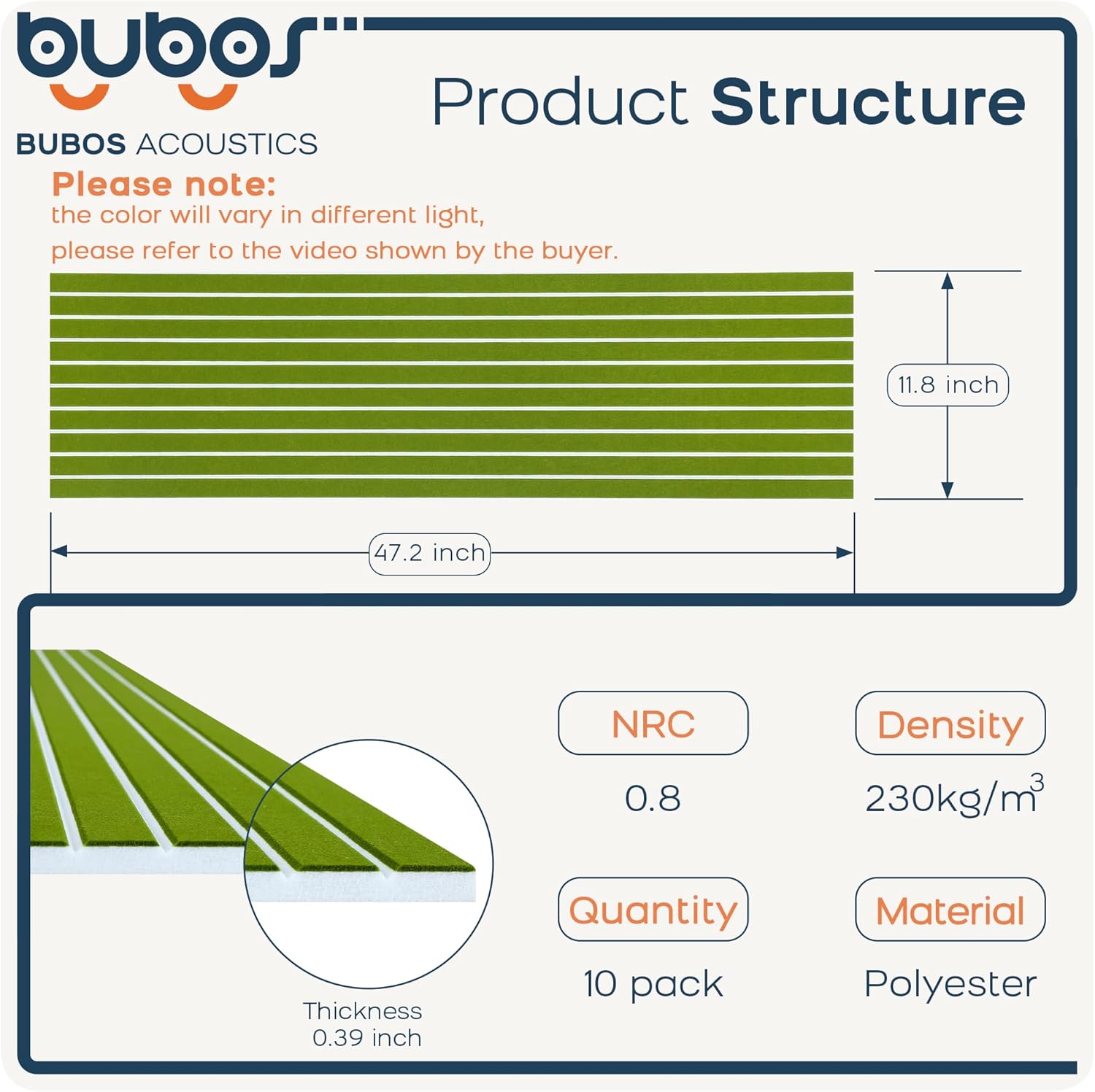 BUBOS 10 Pack Large Acoustic Panels, 48"X 12"X 0.4" Sound Proof Panels for Walls,Decorative Self-Adhesive Acoustical Wall Panels,3D Slat Sound Panels for Home Office Studio (Green 01)
