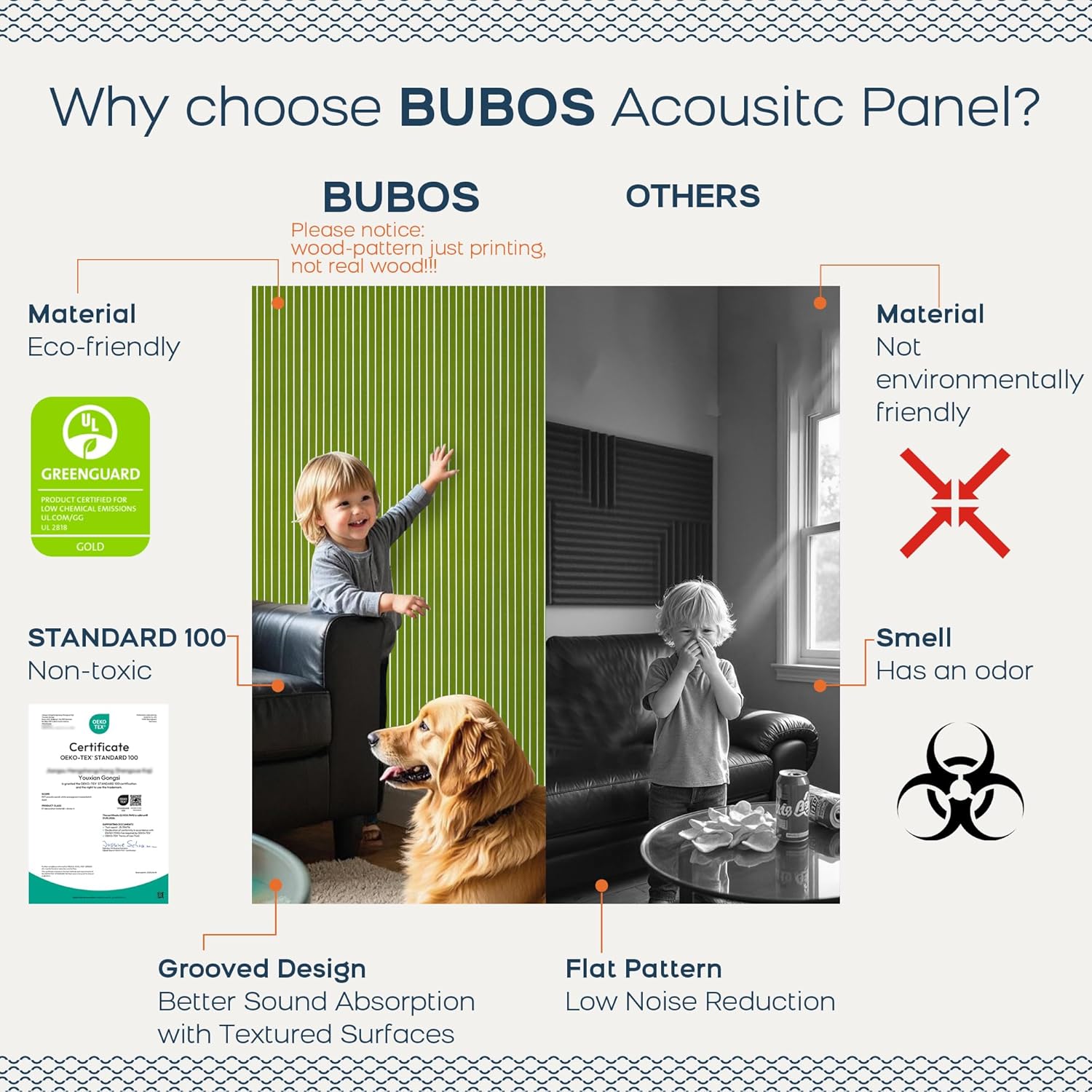 - ♻【Upgraded Acoustic Features 】BUBOS sound panels help reduce unwanted reflected sound in any room of your home or building, they are lightweight and are easy to mount on the wall, doors and ceiling. Help reduce background noise, echoes, reverberation time(RT), and decrease standing waves (that's what makes noisy studios or offices so bad).