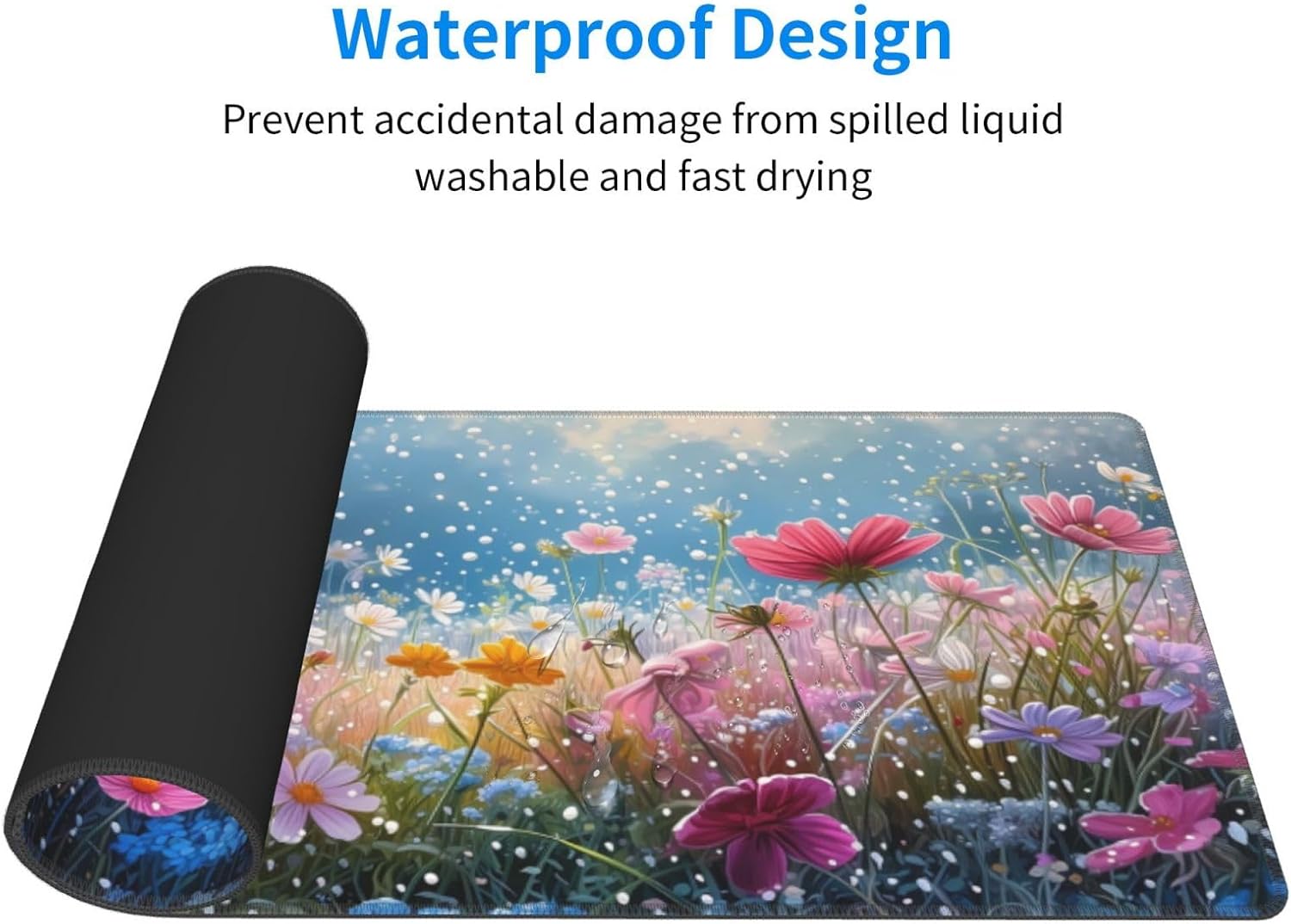 Gaming Mouse Pad Desk Pad,Extended Big Mouse Pad,31.5x11.8 Inch Long Computer Keyboard Mouse Mat Mousepad with 3mm Non-Slip Base and Stitched Edge for Gaming and Office⦠(Flowering shrubs)