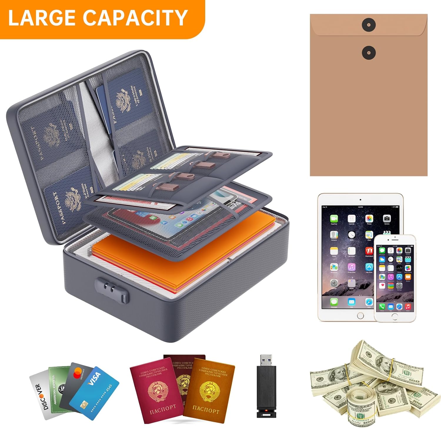 DocSafe 5200°F Document Organizer with Lock,Upgraded Heat Insulated Fireproof&Waterproof Box 8 Layers File Organizer,Portable Home Travel Safe Storage for Important Documents, Files,Gray (Soft)