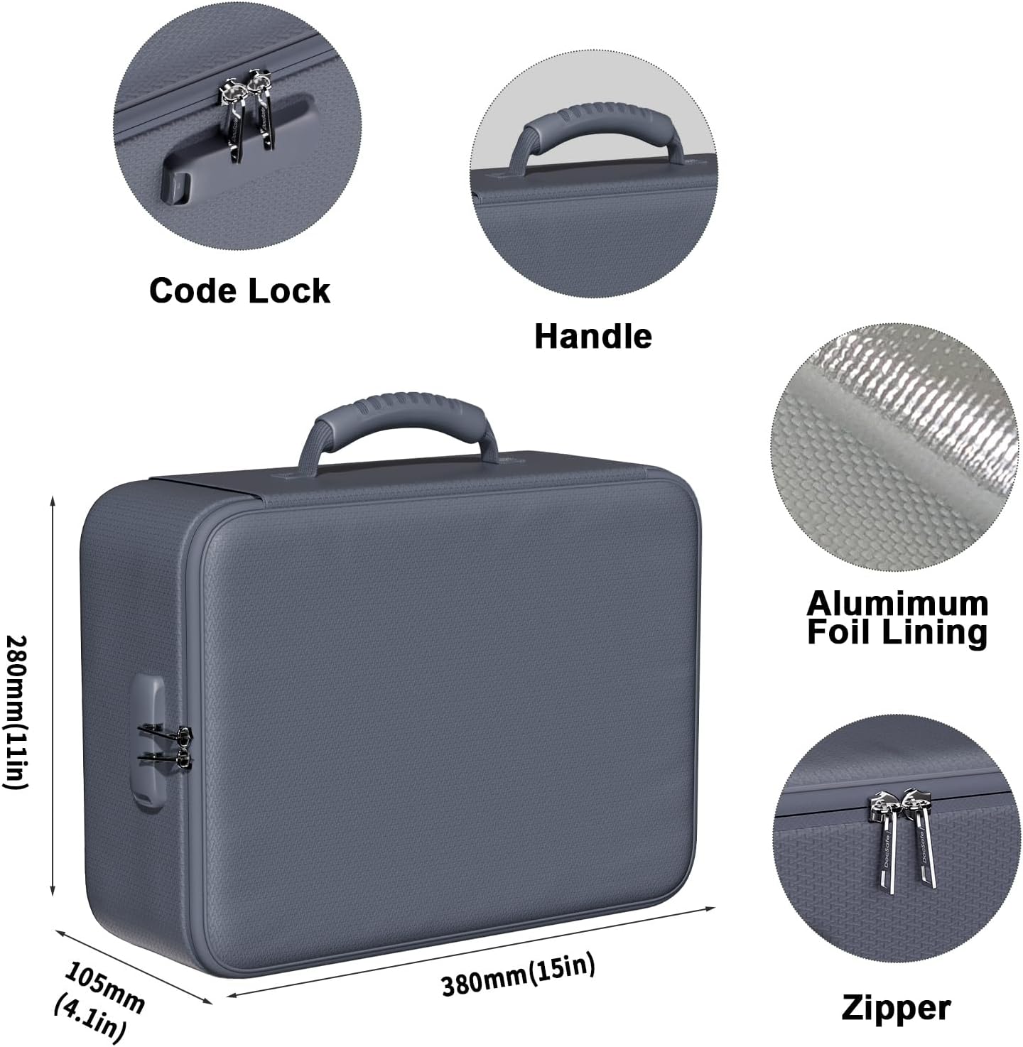 - 5200°F Fireproof & Water-resistant safe: The Upgraded important document organizer is made of thickened silicone coated fireproof cotton material and aluminum foil which withstand the temperature up to 5200℉(double safe protection). Aluminum foil lining isn’t easily melt under high temperature after several tests. It has been passed by SGS TEST(UL94 VTM-0 Certified).The bag is fireproof&Water-resistant, which can effectively protect your important documents in a fire, flood, and wet weather