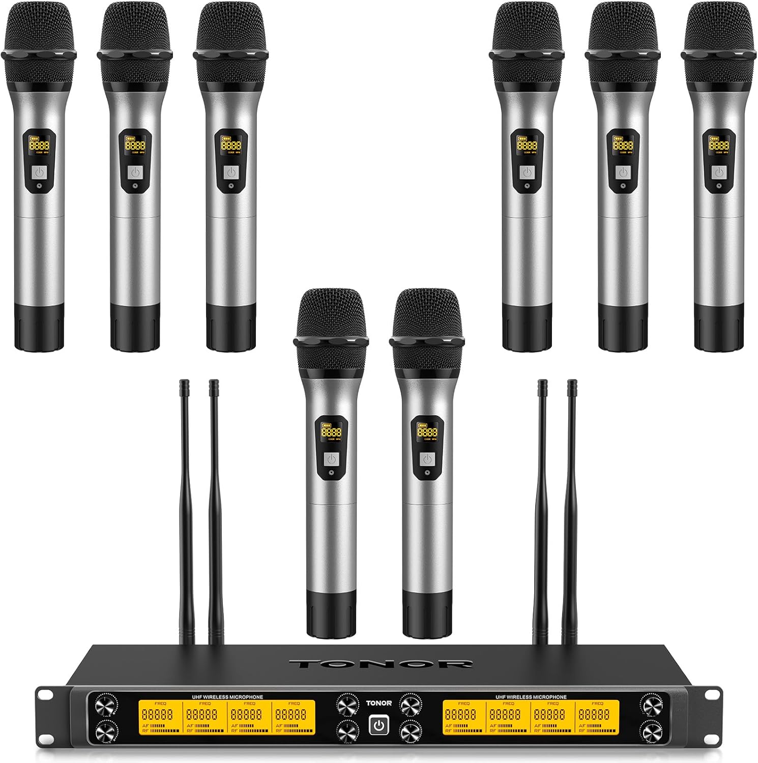 TONOR Wireless Microphone System, 12-Channel UHF Cordless Mic, 8 Handheld Metal Dyanmic Mic with Receiver, 295ft Range, 8x12 UHF Frequencies, Mic Mute, Ideal for Church Singing Karaoke Rehearse TW880
