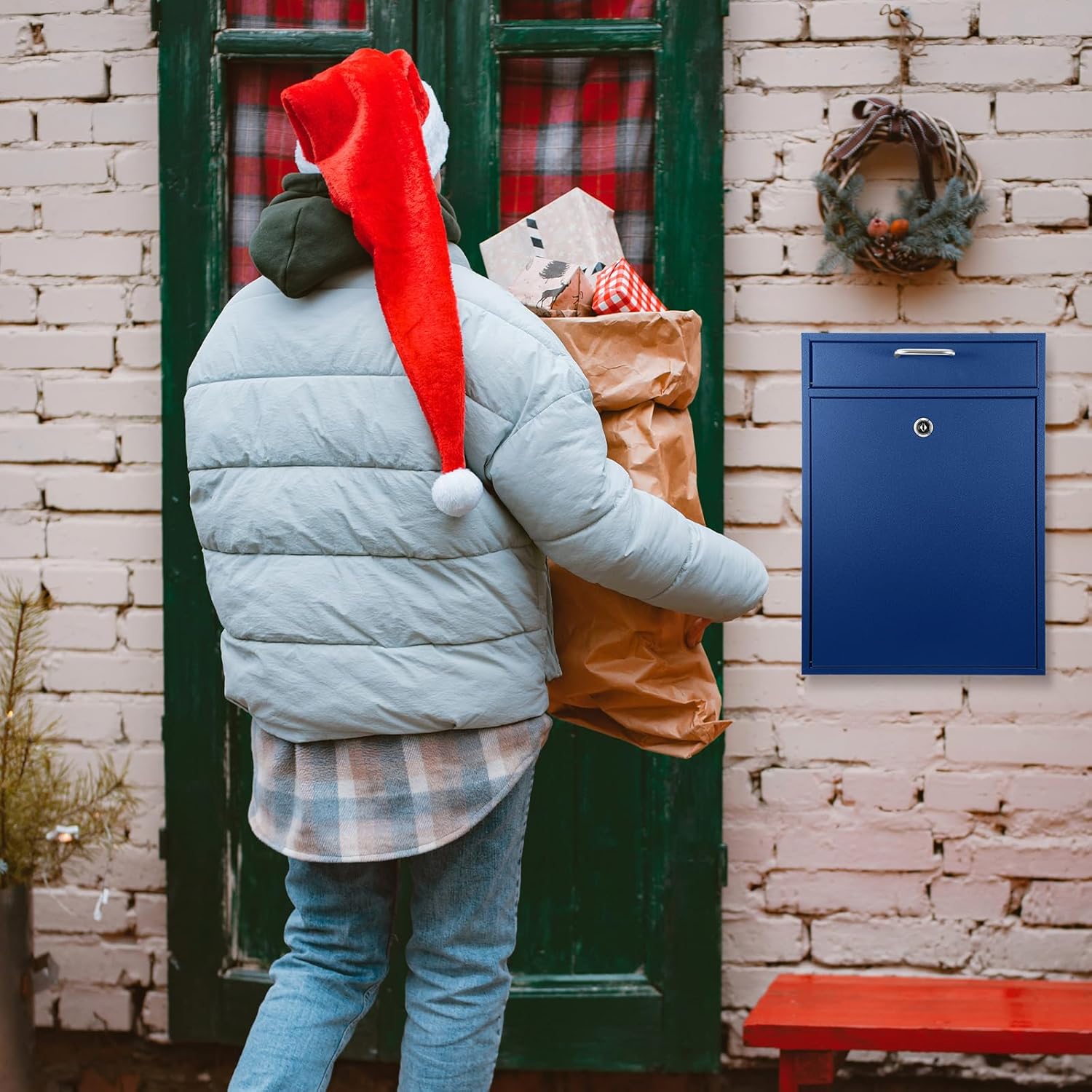 Locking Mailbox with Key for Outdoor 16.2 x 11.2 x 4.7 Inches Large Wall Mount Mail Box with Lock Security Mail Drop Metal Collection Boxes Hanging Secure Postbox(Dark Blue)