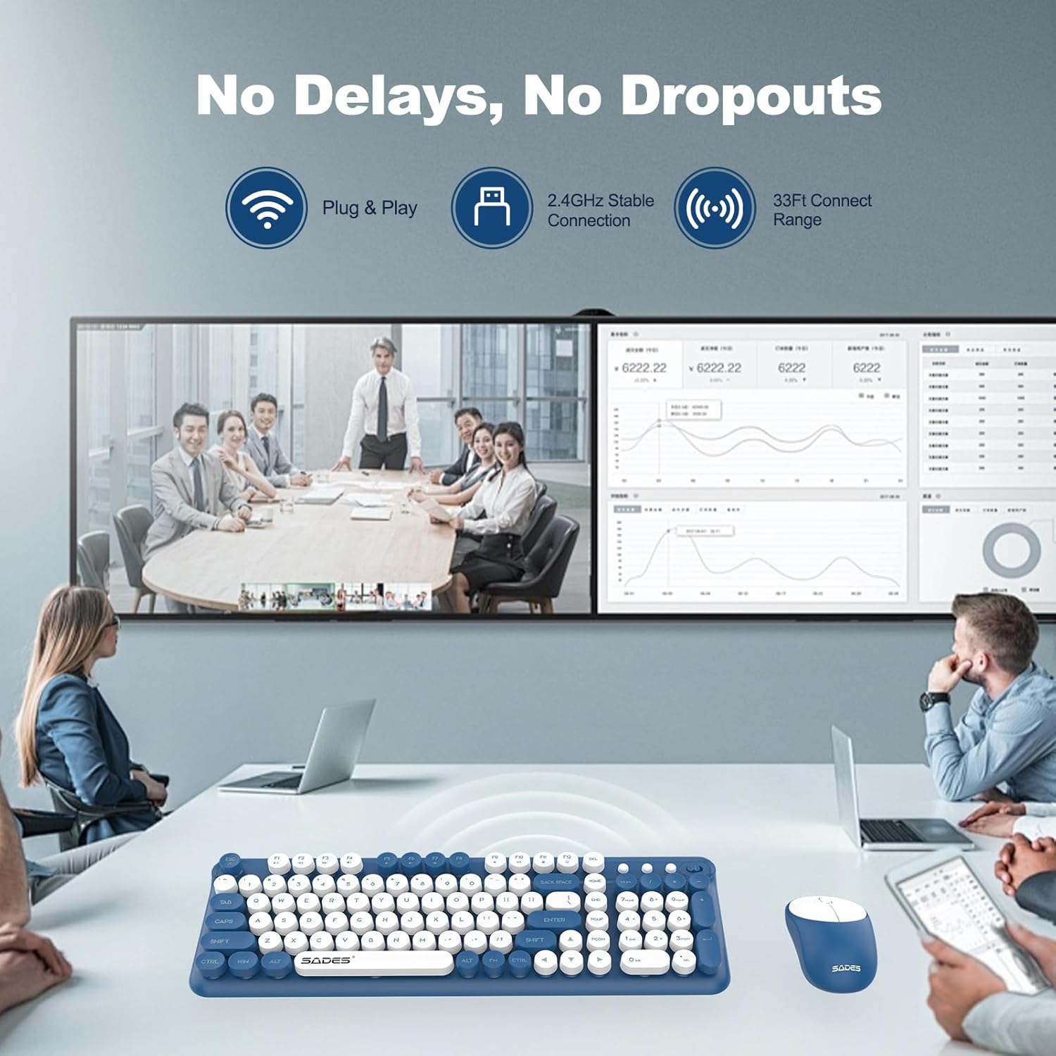 - 【Wireless Keyboard and Mouse Combo】 This retro keyboard and mouse combination uses a 2.4GHz USB wireless receiver with a transmission distance of 33 feet (10 meters). Whether in a spacious office or a comfortable living room, you can move freely and enjoy the convenience of wireless. Just plug in the USB receiver without complicated installation steps. It is plug-and-play, stable and efficient, and suitable for home, office and gaming use