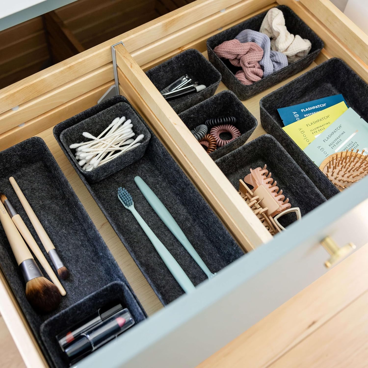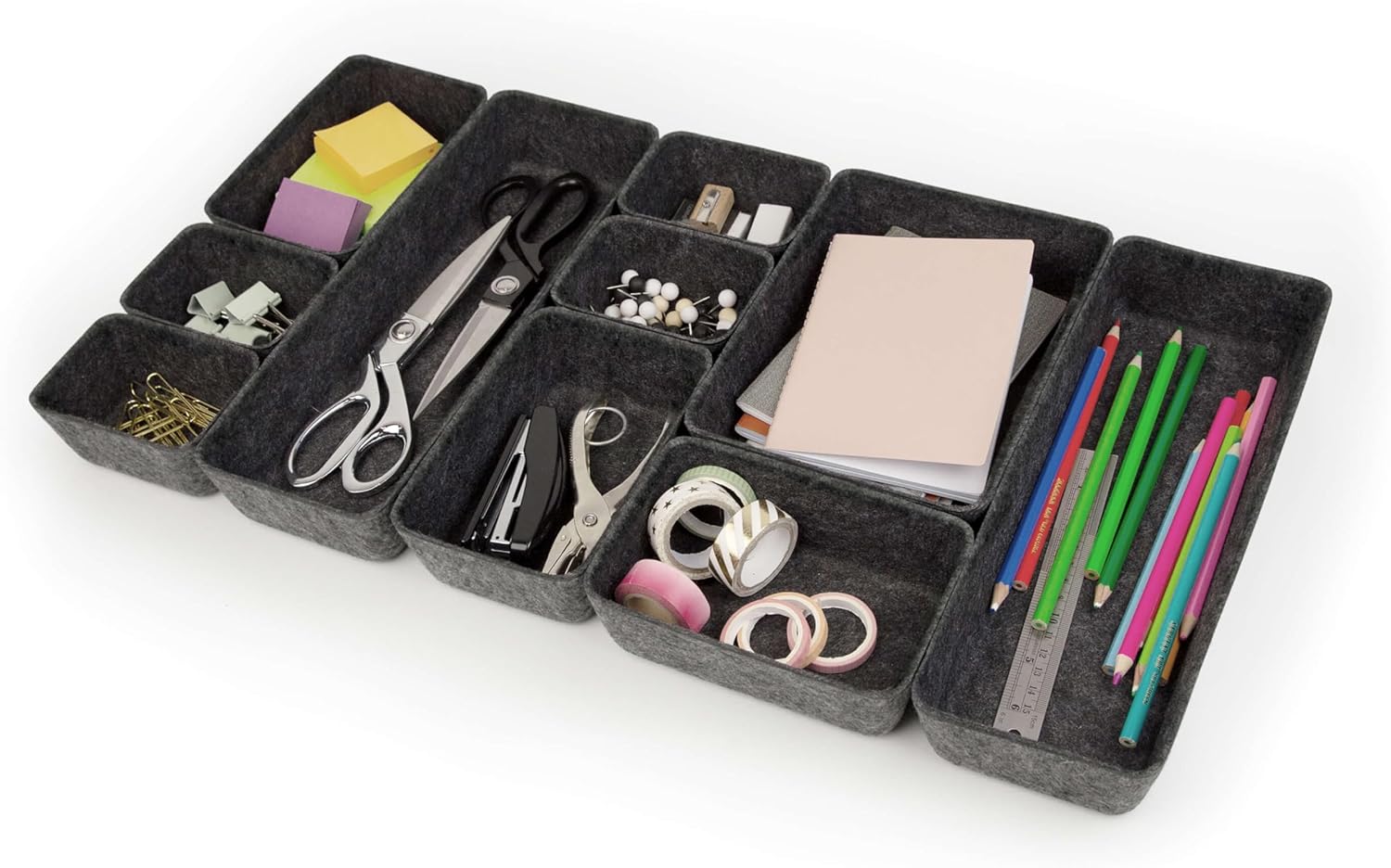 - Whether nestled in a drawer or perched on a desk, these bins are designed to neatly contain all your essentials, from office supplies and jewelry to random beauty products.