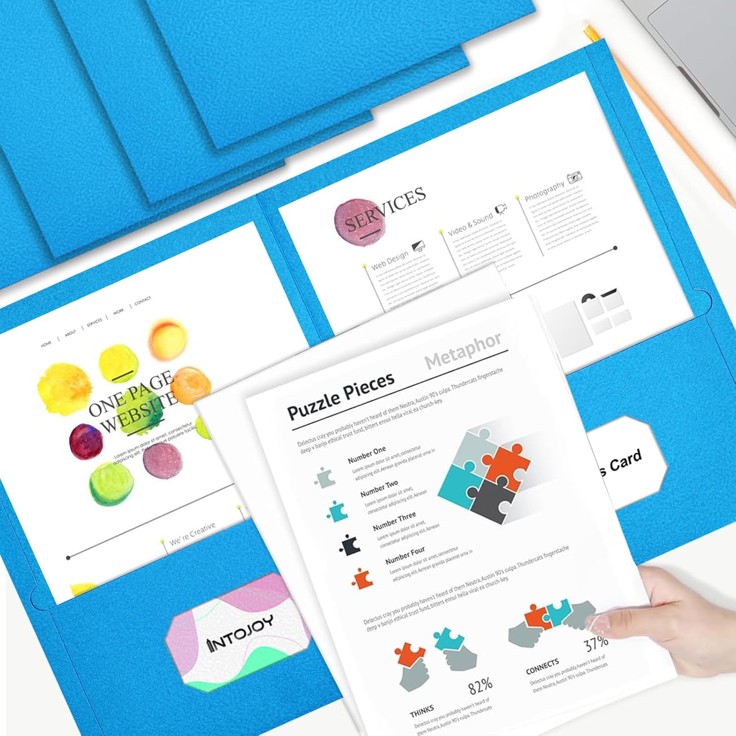 Folders with Pockets,IntoJoy 50 Pack 2 Pocket Folders Fit Letter Size Paper File Folders for School Office Business Home Filing Resume Portfolio (Blue)