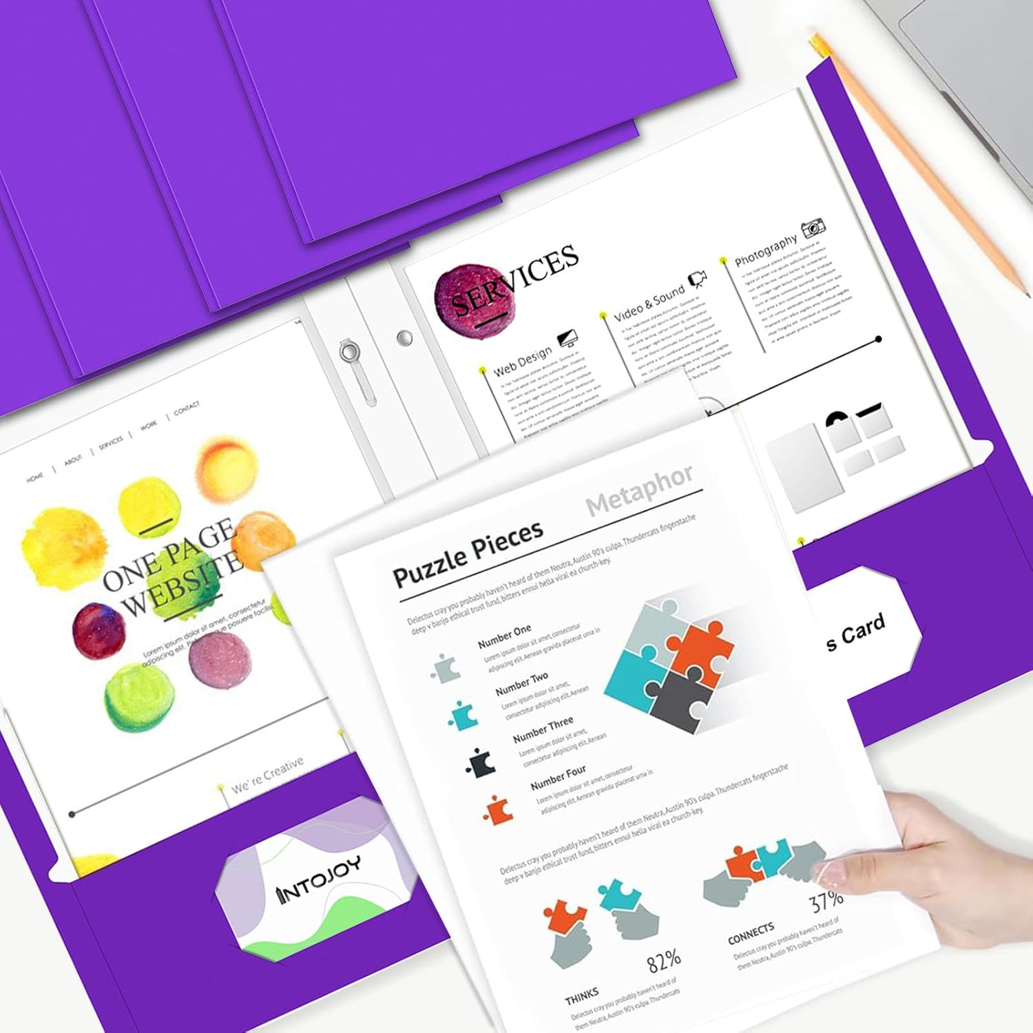 Folders with Pockets,IntoJoy 50 Pack Two Pocket Folders Business Card Holder Paper Folders with Prongs for School Office Filing Cabinet Resume Portfolio (Purple)
