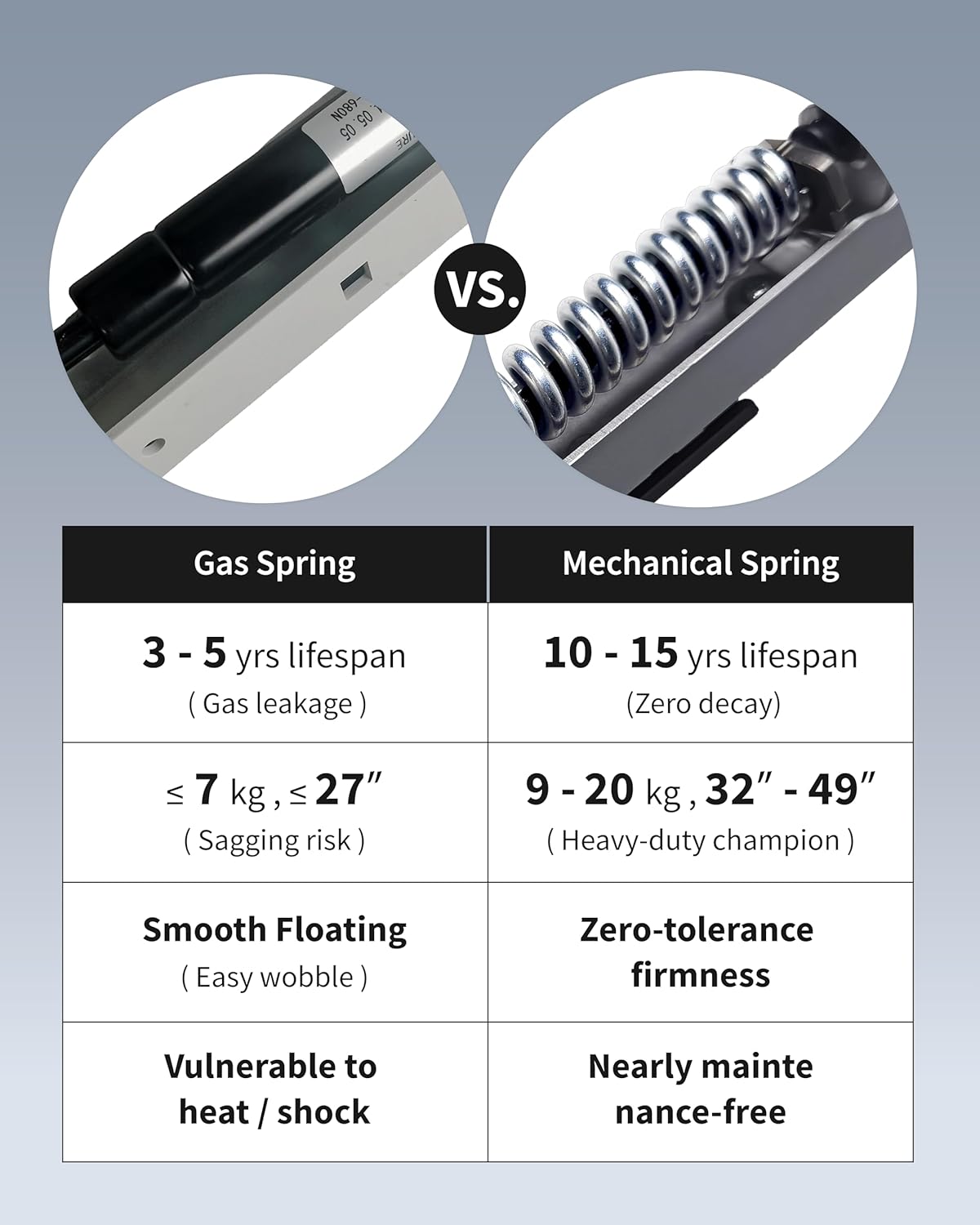 - 【Premium Spring Arm】 E66 features a flexible movement structure, enables instant and effortless adjustments, and can also work as vertical monitor stands for 2 monitors to achieve the optimal orientation for work.