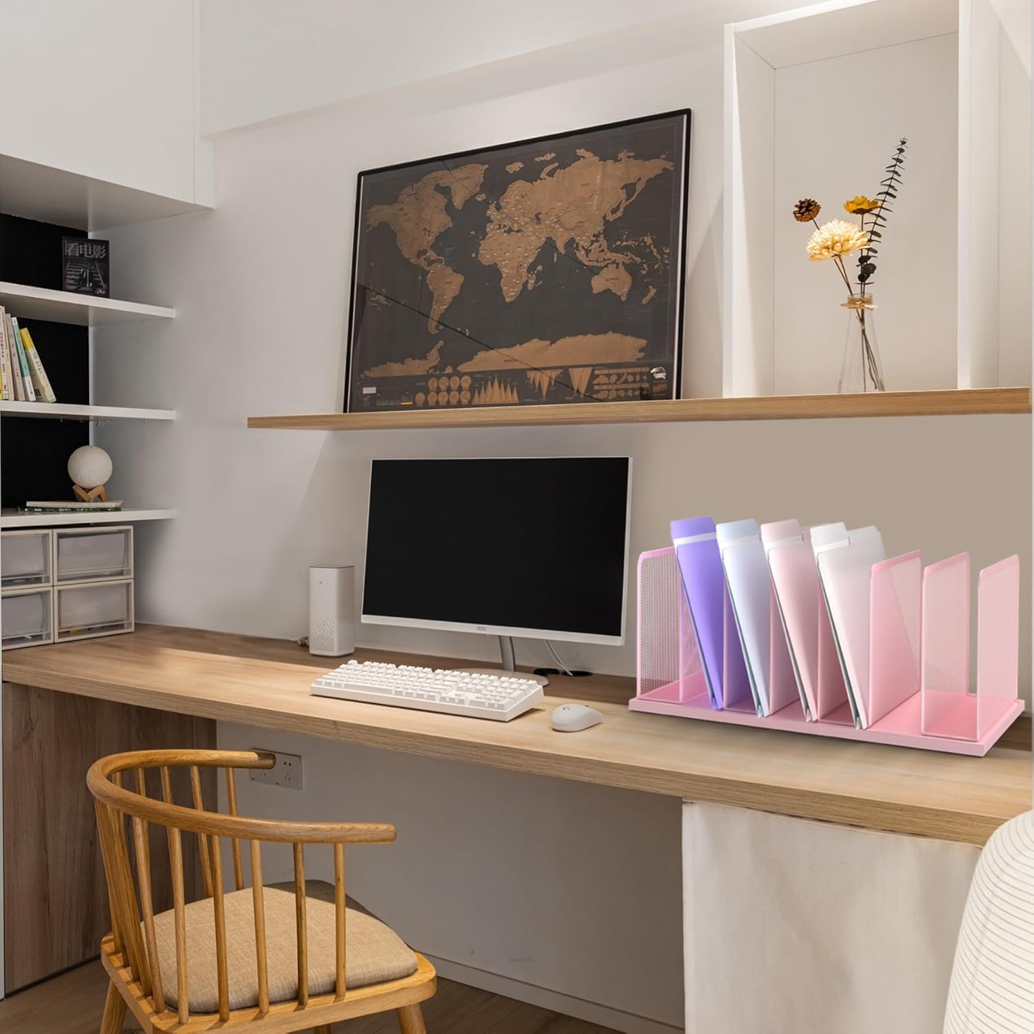 Kuntine.B Desk File Organizer Upright Mesh Desktop Organizer File Sorter Office Organization File Holder for Home, Office & Classroom (Pink, 2 Pack 7-Section)