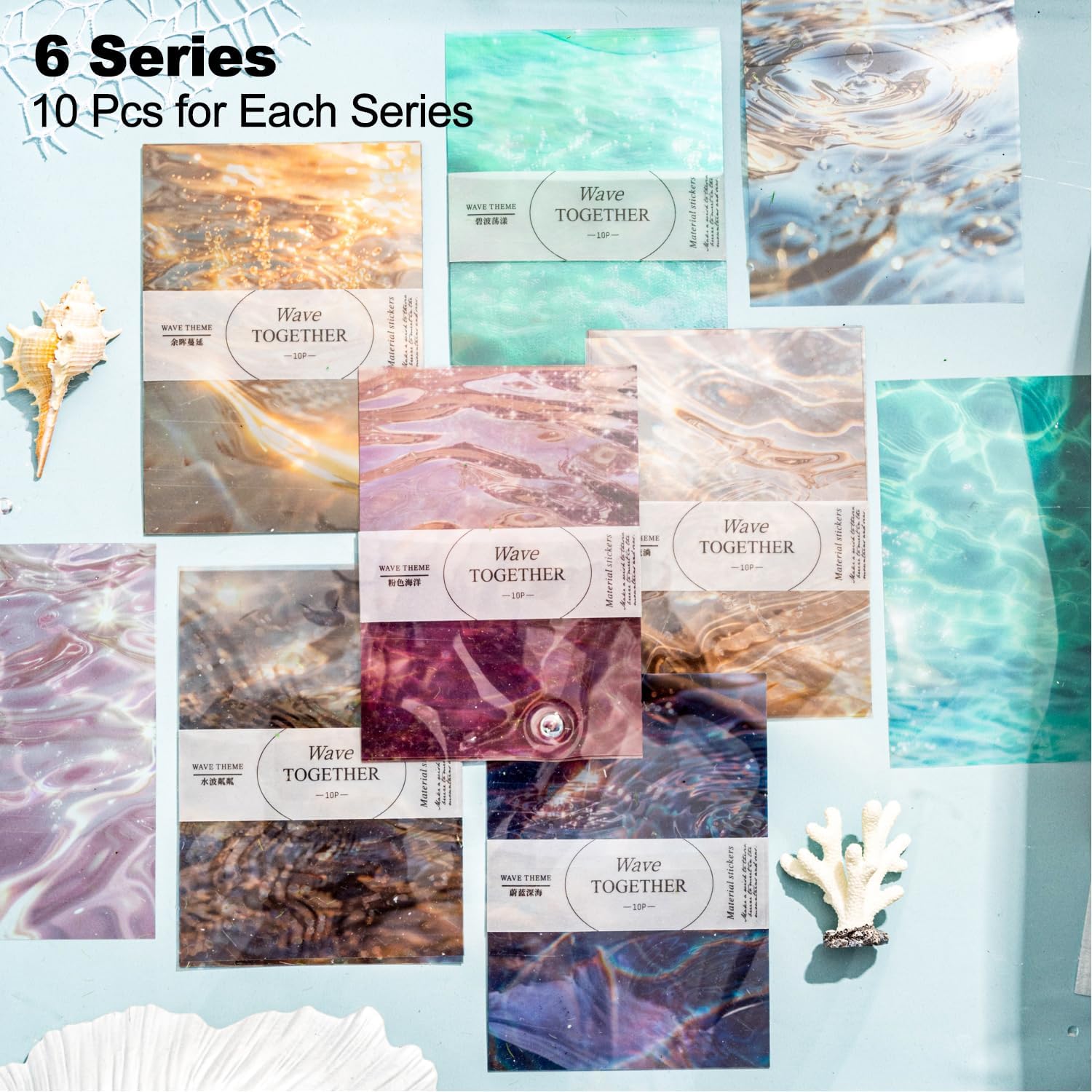 Wave PET Scrapbook Stickers Set, 60PCS Ocean Ephemera for Scrapbooking, Junk Journaling, Crafting, DIY Projects, Diaries, and Art Supplies
