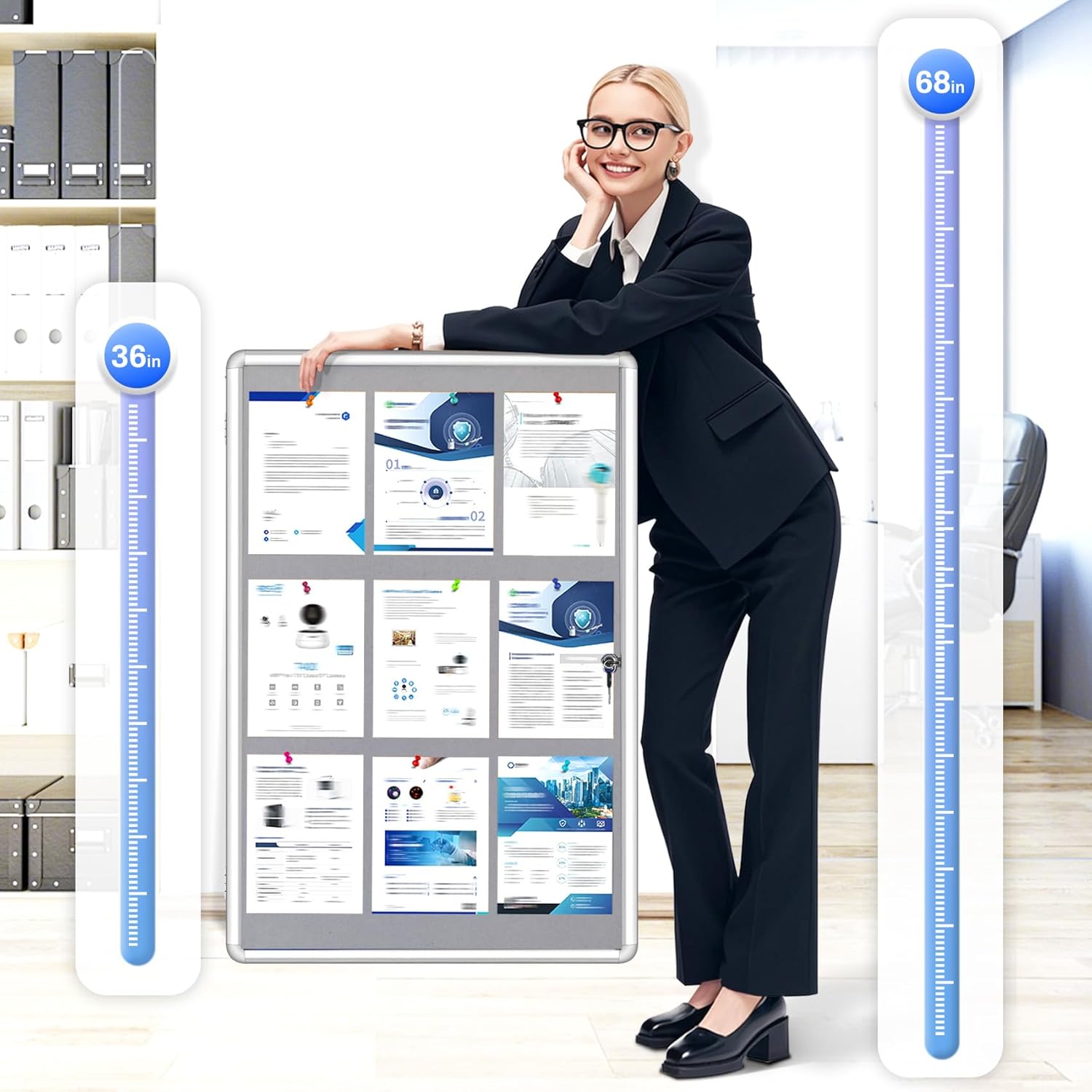 Magula 36"x24" Enclosed Bulletin Board Tamper-Proof Dispaly Case, Aluminium Frame, Shatter Resistant Lockable Bulletin Board, Lockable Noticeboard