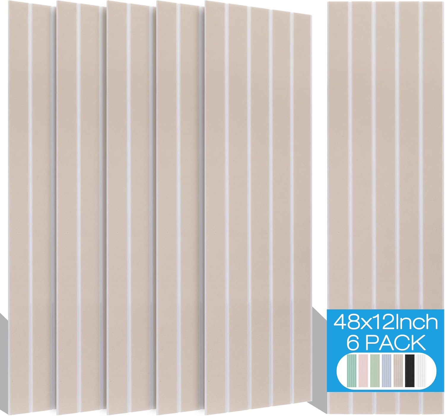BUBOS 6 Pack Large Acoustic Panels,48x12Inch SoundProof Panels for Walls,Self Adhesive Acoustic Wall Panels,Decorative Sound Panels for Home Studio Office (Camel 02)