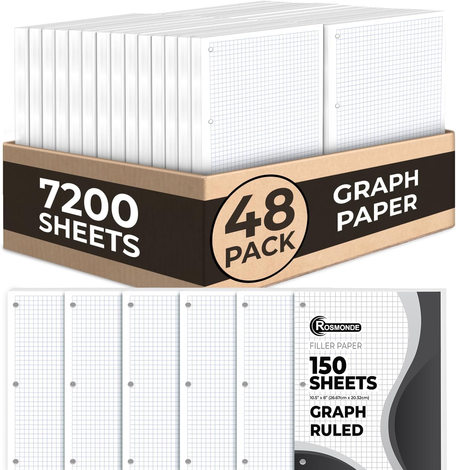 7200 Sheets Graph Paper Bulk, 48 Pack, Bulk Loose Leaf Paper, 4x4, 8" x 10.5", Bulk Grid Paper, Thick Graphing Paper, Fights Ink Bleed, 3 Hole Punched, Quad Ruled Sheets, Bulk School Supplies