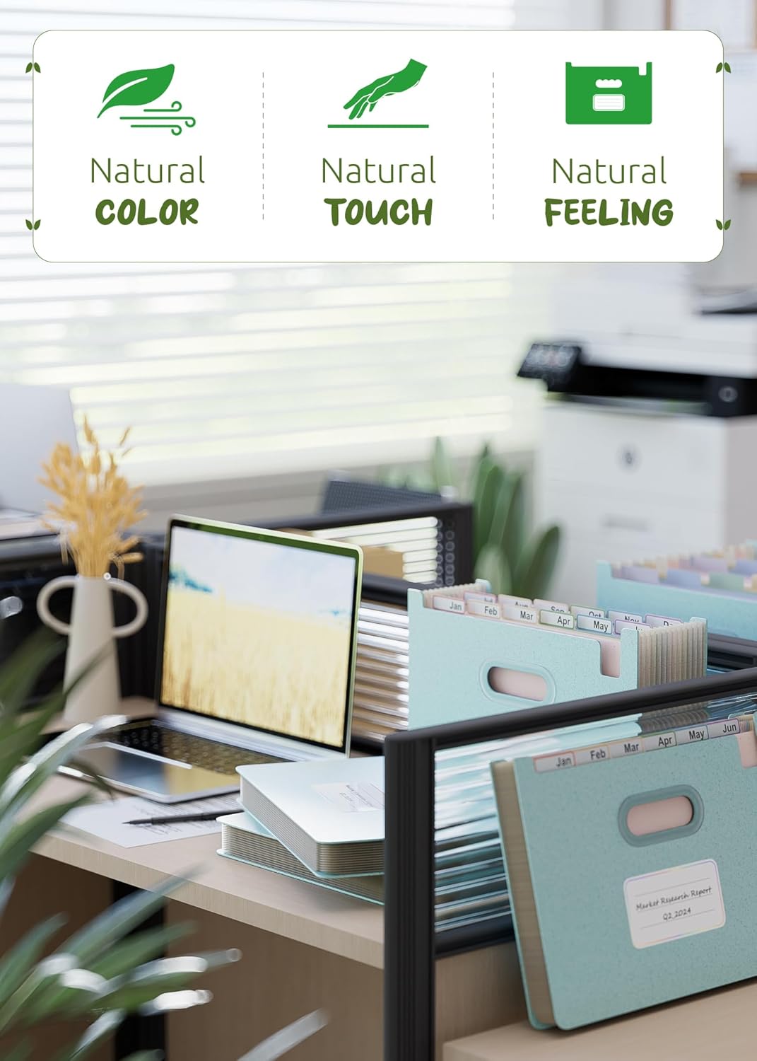 - 【Wheat Straw Material】Ecostash's Wheat Straw Open Top Accordion File Organizer are BPA-free, making them safer and healthier compared to plastic and paper file folders. Unlike plastic and paper hanging folders, wheat straw material is sourced from renewable agricultural waste, reducing dependence on petrochemical plastics and forest logging. This helps reduce greenhouse gas emissions, making a collective contribution to protecting the Earth's ecology.