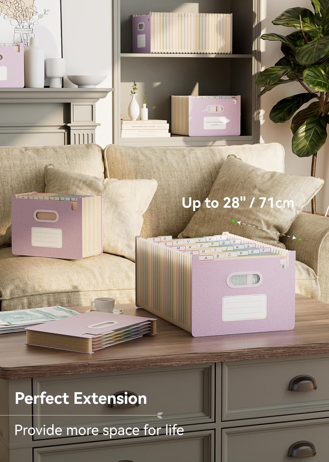 Accordion File Organizer, 26 Pockets Wheat Straw Expanding File Folders, Upright&Open Top, A-Z Bill Receipt Organizer, 100% BPA Free, Return to Nature, Healthy Living, Letter/A4 Size-Lavender Purple