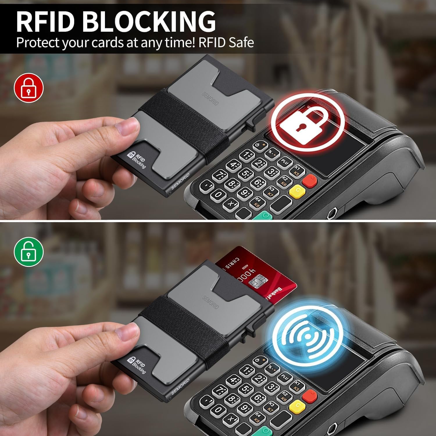 - š³ ULTRA THIN PROFILE (SLIM WALLET FOR MEN): The minimalist tactical wallet is very thin and can be carried comfortably in a pocket. The aluminum cardholder size is 3.9*2.5*0.5in,weight only 2.6oz. And expandable backplate designed for additional storage. Ditch the bulk, less is more.