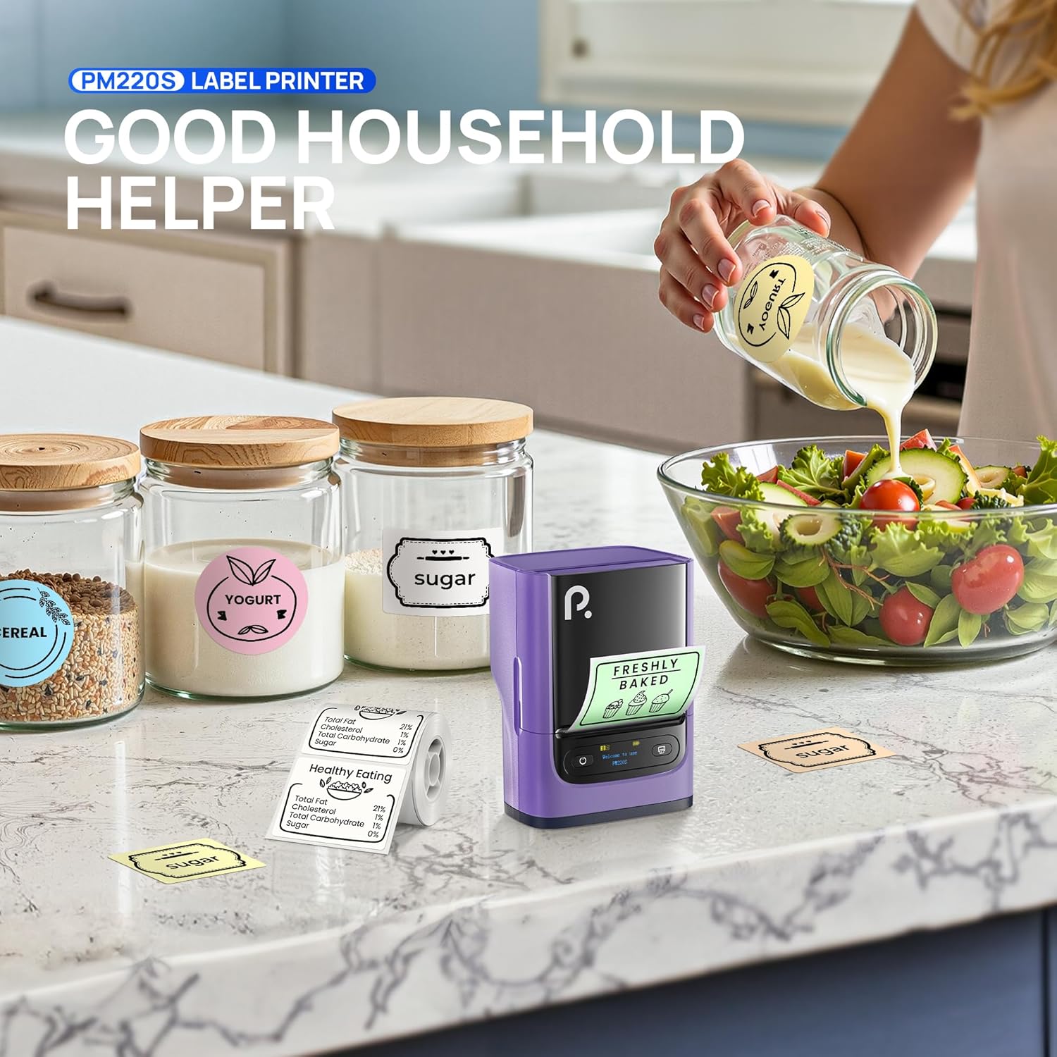 POLONO PM220S Label Maker Machine with Tape, 2 Inch Bluethooth Portable Thermal Label Printer for Small Business, Office, Home, Address, Logo Label, Sticker Printer for Phone/Tablet/PC, Purple