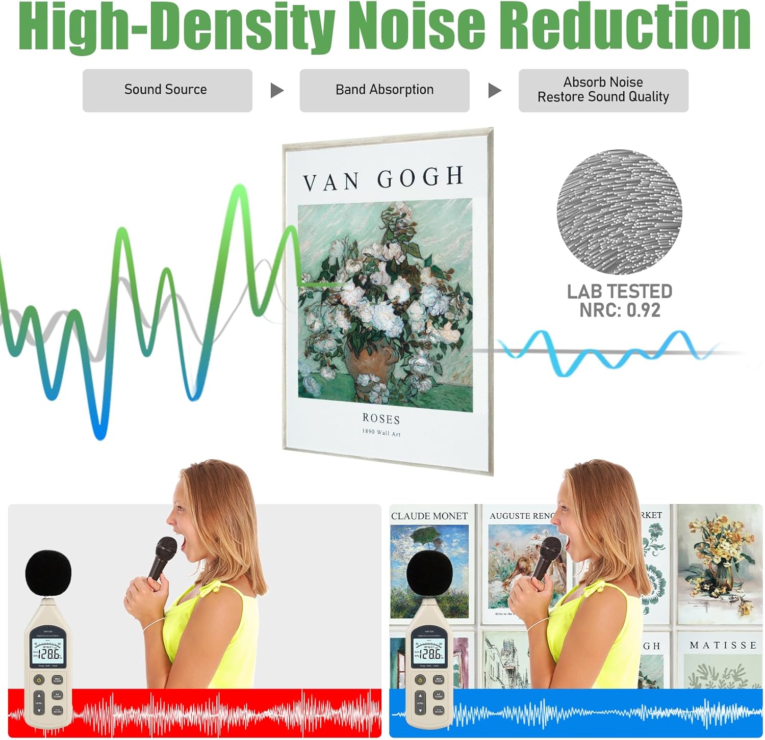 - 【ARTISTIC COLLABORATION】: The art soundproof panels consist of 8 PCS different clearly printed art paintings, each panel is designed to give you a unique visual experience, the more artistically designed decorative acoustic panels for walls are suitable for your recording studio, office, bedroom, living room etc.