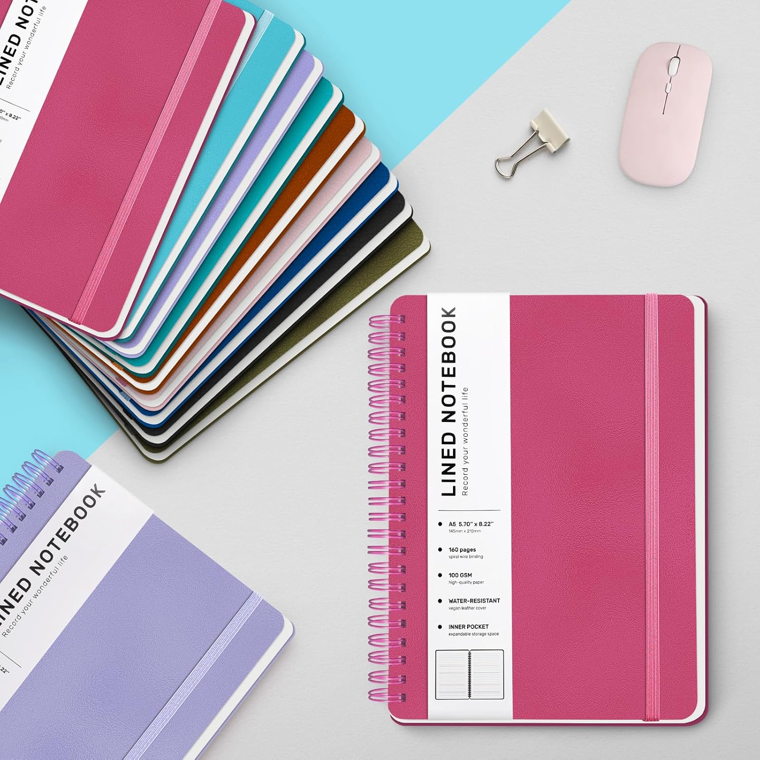 - 160 Pages A5 Notebook - This medium 5.7 x 8.2 inches A5 lined journal notebook features a waterproof brown faux leather cover, 8mm space classic college ruled notebook, total of 160 pages. The professional durable water-resistant plastic hard cover will protect your notebooks, which have oil-resistant and anti-bending properties, effectively protecting the internal paper of the journal and providing a comfortable writing surface.