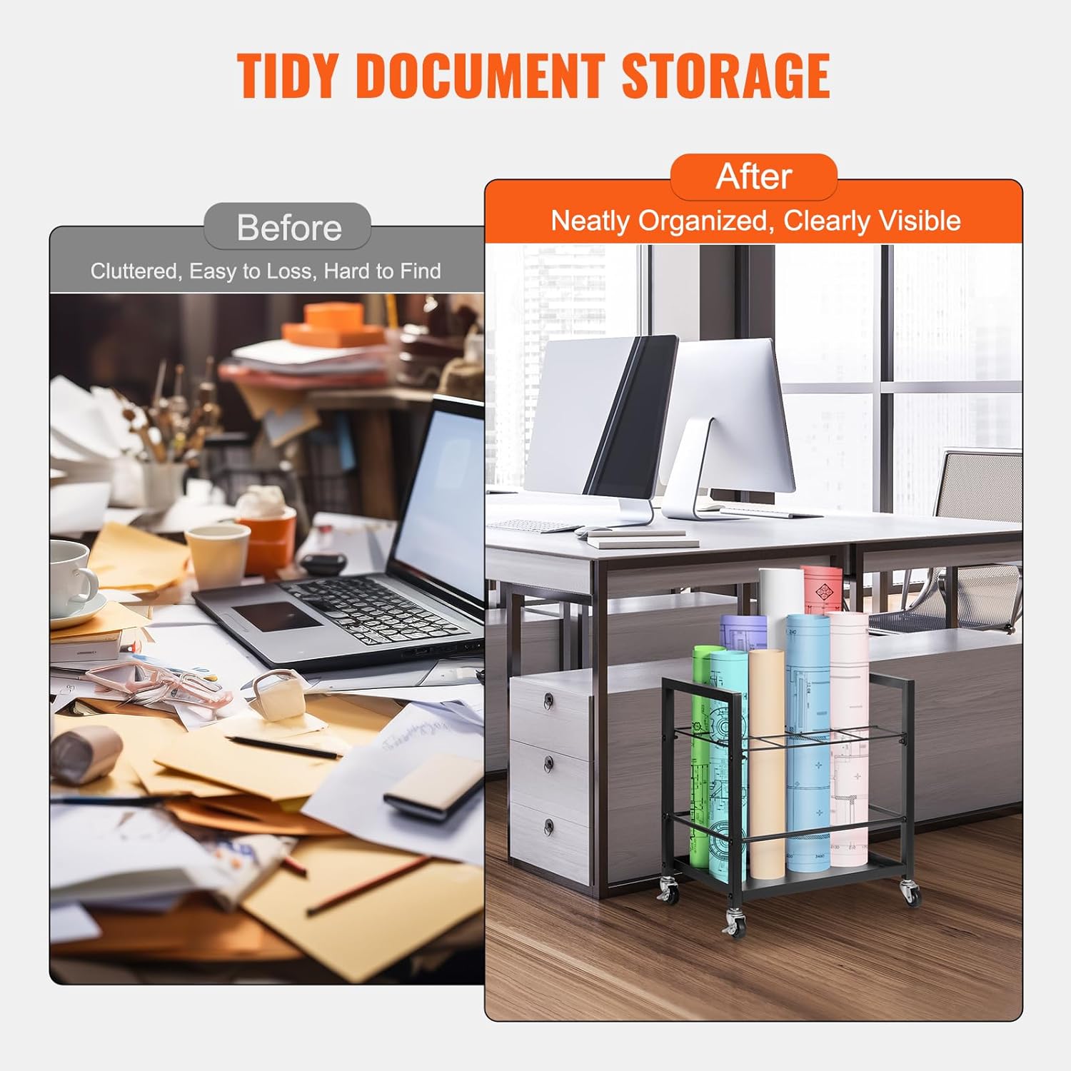 - Convenient Mobility: This blueprint storage organizer has four swivel casters, two of which are lockable, allowing easy movement to your office, studio, or workplace. Documents remain secure and organized during transport, enhancing portability.