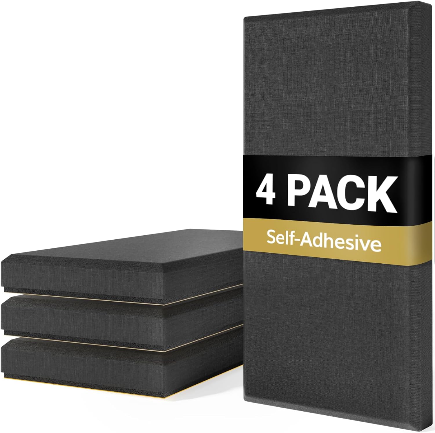 TONOR 4 PCS Large Acoustic Panel, 23.6″ * 11.8″ * 2.05″ 3D Fiberglass Sound Proof Panel with Full Self-adhesive, Decorative Echo Absorbing Wall Panel, for Studio, Living Room, Home, Office, Black