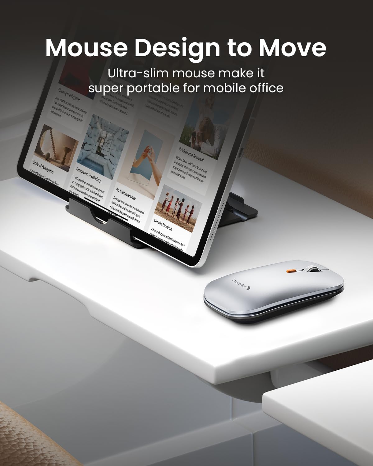 - Precision Ultra-Slim Mouse: Designed for professionals on the move, this portable mouse delivers pro-grade precision with 3 adjustable DPI modes (1000/1600/2400) – adapt to any task instantly. Its slim profile takes up minimal space, slipping into laptop sleeves or pockets, while 25dB micro-switches prevent "click fatigue" in shared workspaces
