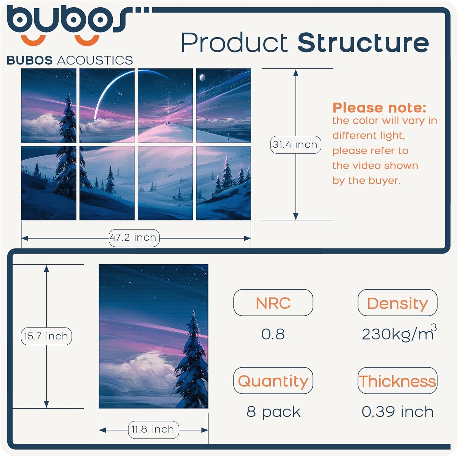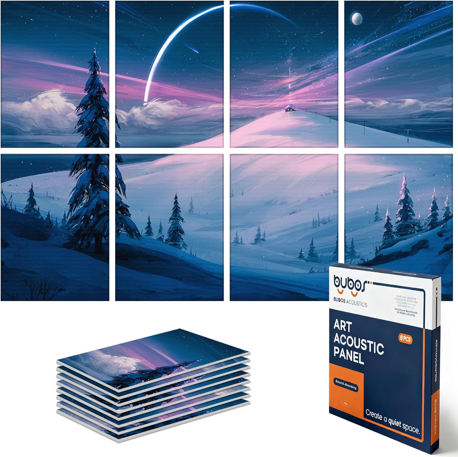 BUBOS 8 Pack Art Acoustic Panels Soundproof Wall Panel,47.2X31.4 Inches Sound Absorbing Panel,Self-adhesive Decorative Acoustical Wall Panels, Acoustic Treatment for Ceiling Home Office(Snow 03)
