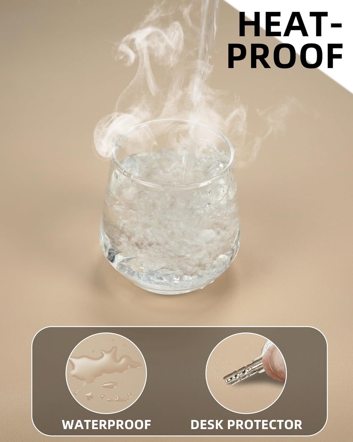 Leather Desk Protector, Large Mouse Pad, Non-Slip, Waterproof PU Leather Blotter Mat, Desk Cover for Office and Home (Beige, 36" x 17")