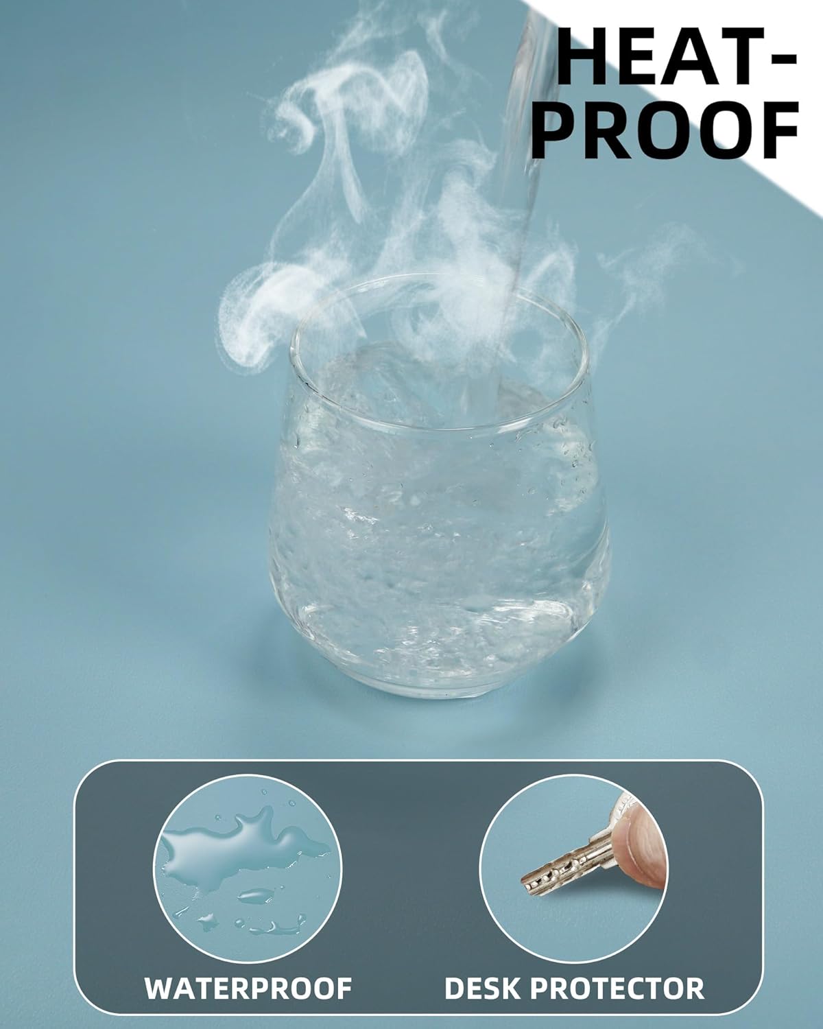 Leather Desk Pad Protector,Desk Mat,Large Mouse Pad, Non-Slip Desk Pad, Waterproof PU Leather Desk Blotter Mat, Desk Cover for Office and Home (Light Blue, 36" x 17")