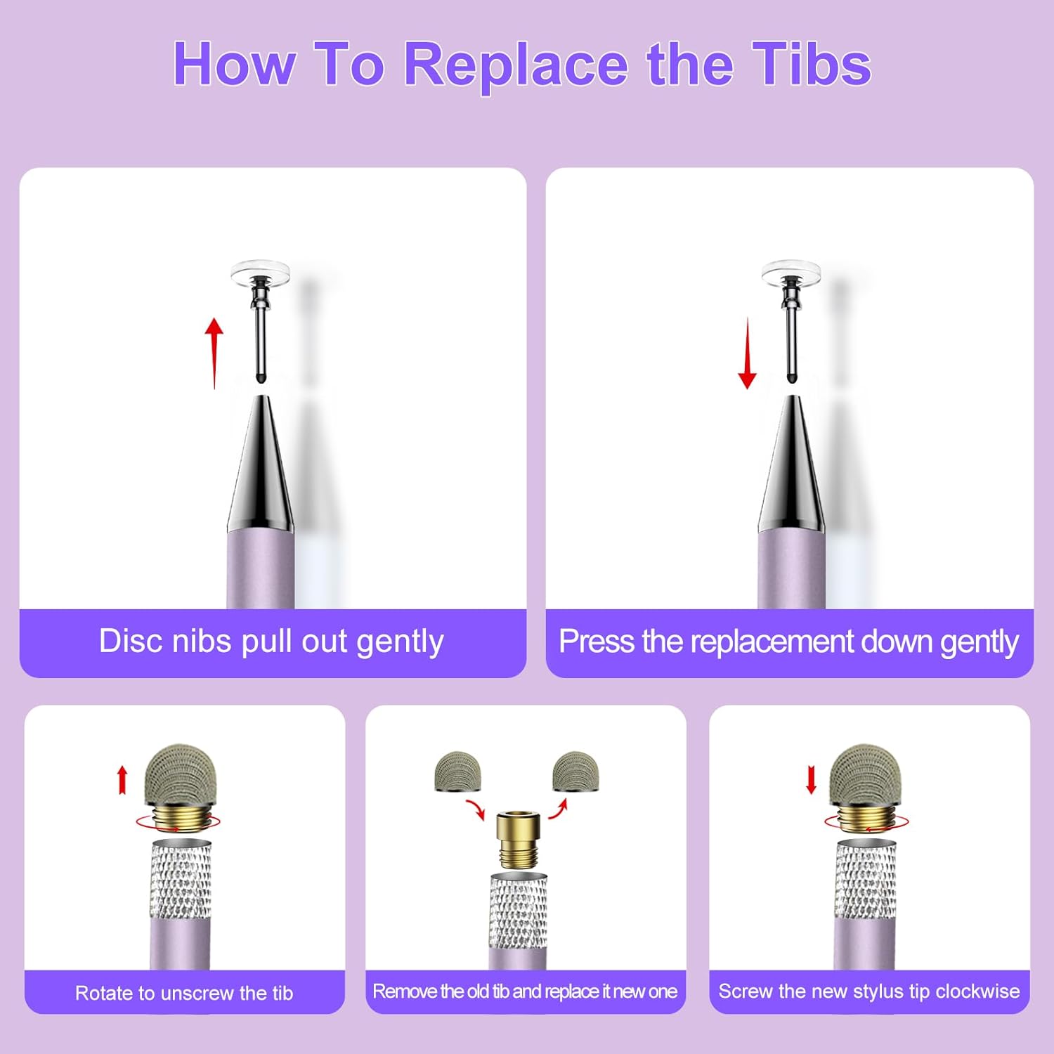 - 【After Service】You will get 6 stylus pen for touchscreen in different colors (silver/blue/gold/green/purple/rose gold),stylus accessories include 3 disc nibs and 3 fiber pen caps, both ends are freely replaceable without tools, you can easily replace them by rotating the end of the fiber pen cap or pulling out the disc nib. You can share the stylus for ipad with your family and friends. When you have problems with the Zhao Cai Jin Bao stylus pen and need help, you can always contact us.