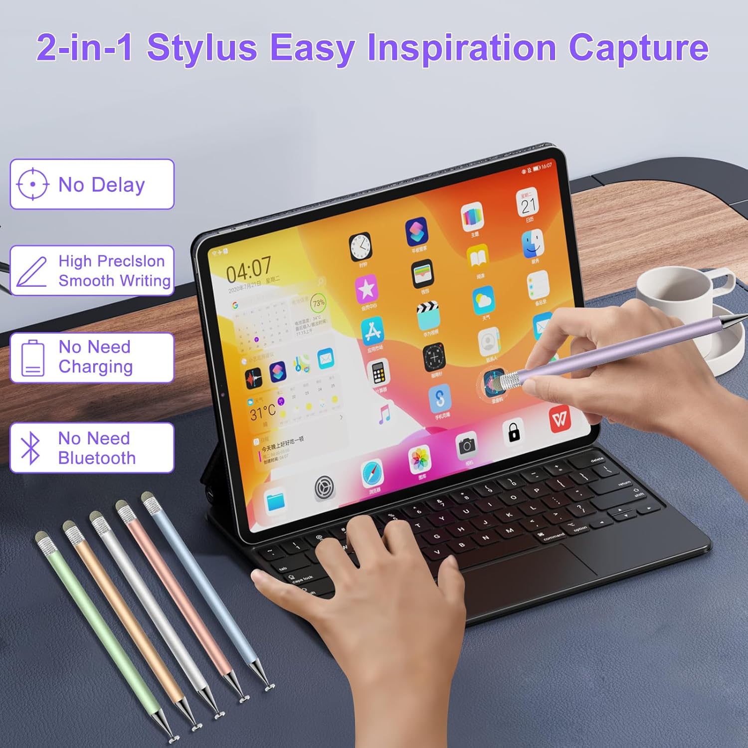 Stylus Pen for Touchscreen,2in1 High Precision Sensitivity Stylus, Suitable for iPhone/Ipad/Android Stylus for Ipad,Compatible with Touch(Silver/Blue/Gold/Green/Purple/Rose Gold)