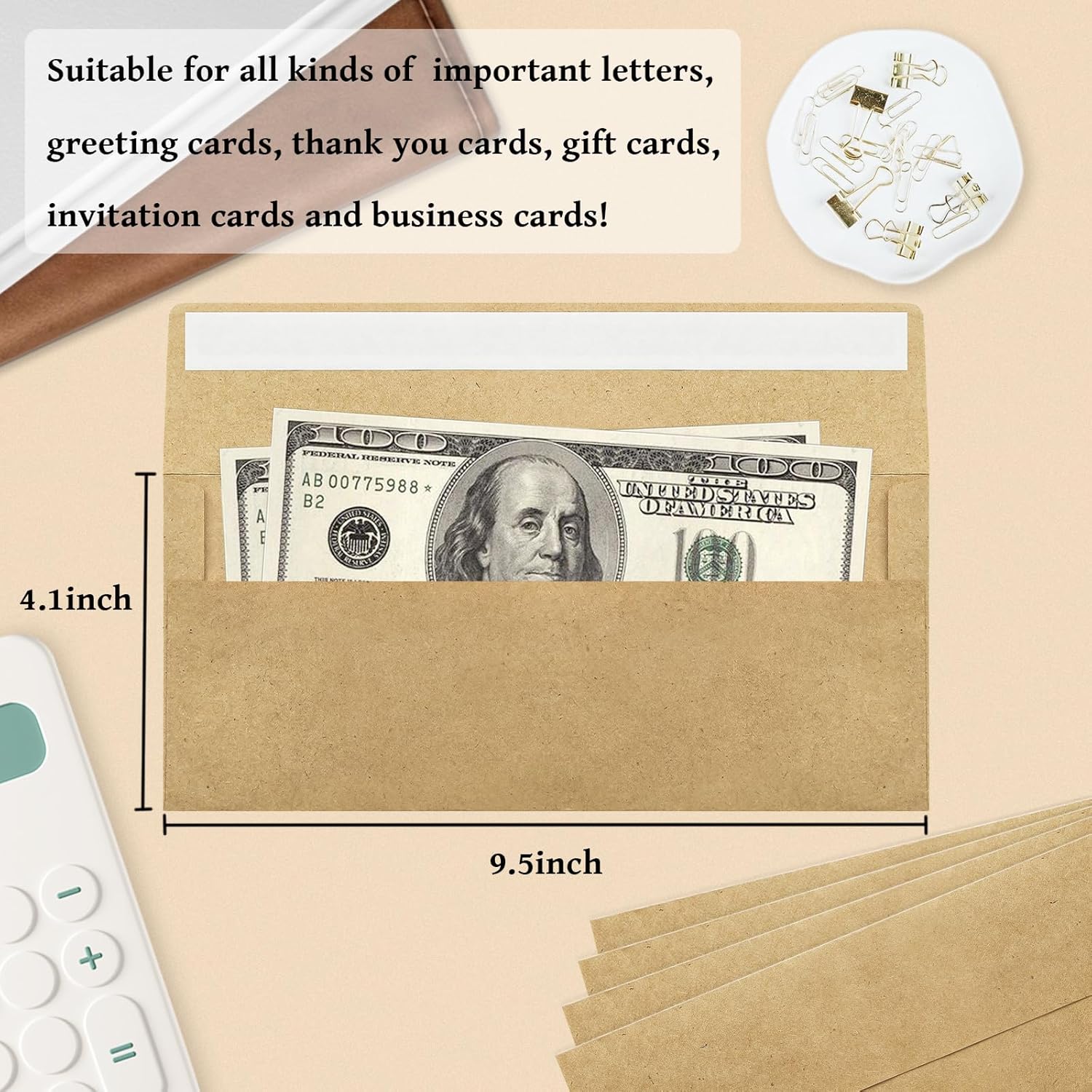 - 【Kraft #10 Business Envelopes】These #10 business envelopes feature a kraft color. The envelopes kit contains 50 pieces 4 1/8 x 9 1/2 Inches kraft envelopes, perfect for your office or home purposes