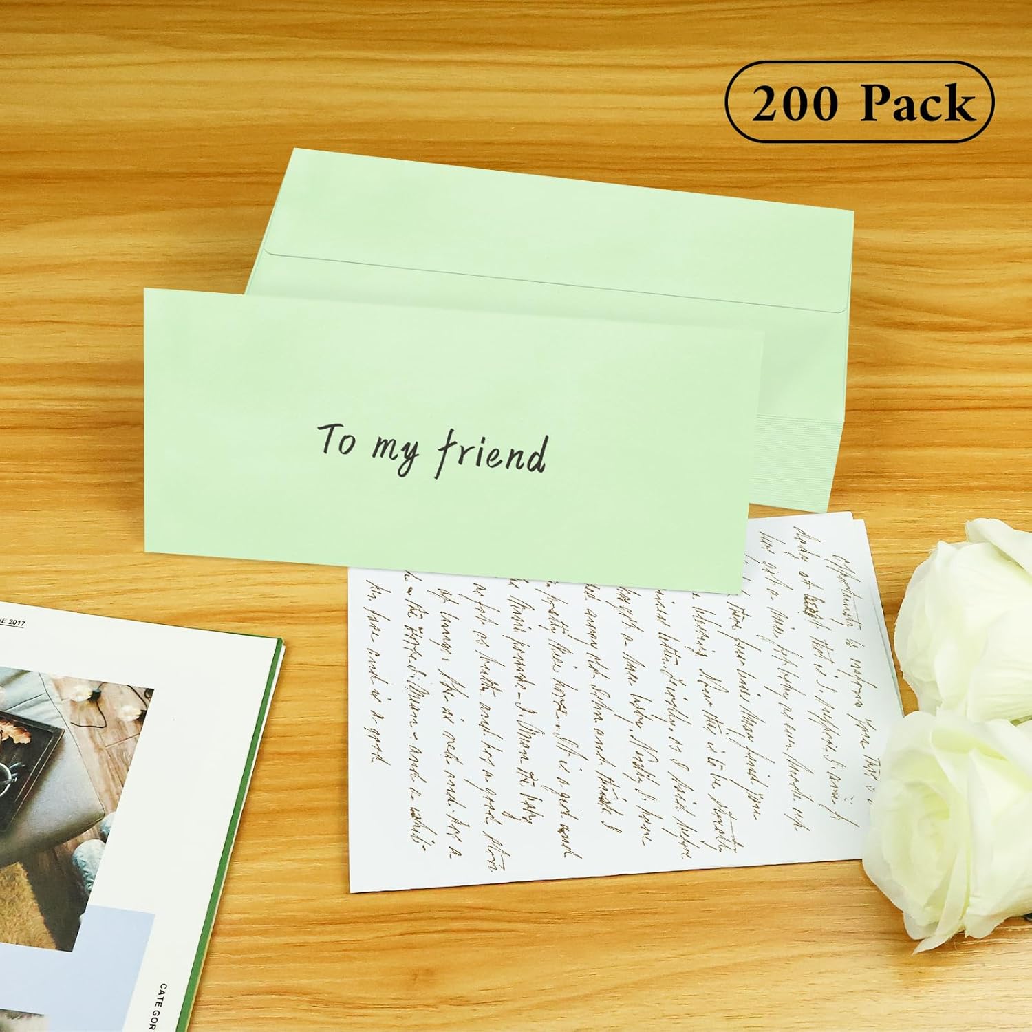 - 【Light Green #10 Business Envelopes】These #10 business envelopes feature a light green color. The envelopes kit contains 200 pieces 4 1/8 x 9 1/2 Inches light green envelopes, perfect for your office or home purposes