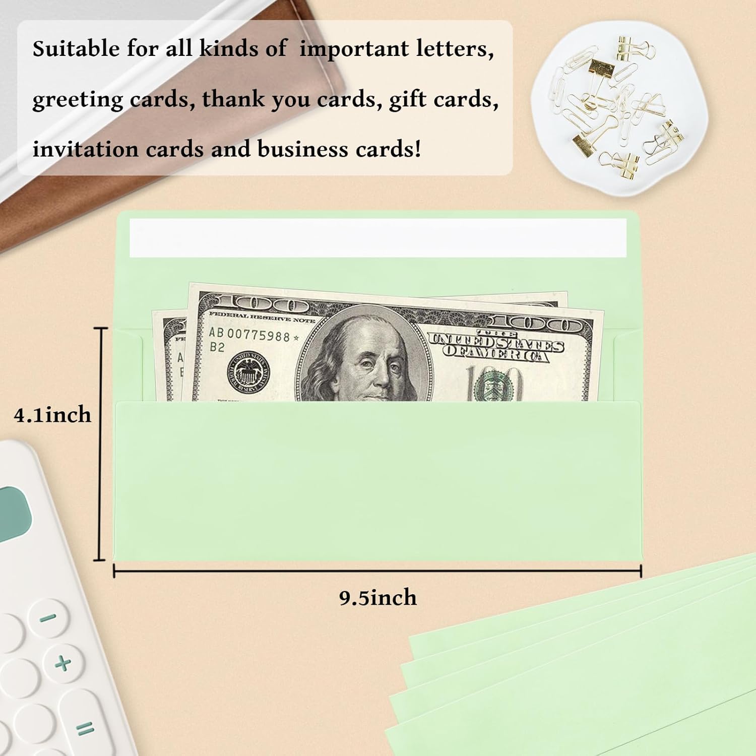- 【Light Green #10 Business Envelopes】These #10 business envelopes feature a light green color. The envelopes kit contains 50 pieces 4 1/8 x 9 1/2 Inches light green envelopes, perfect for your office or home purposes