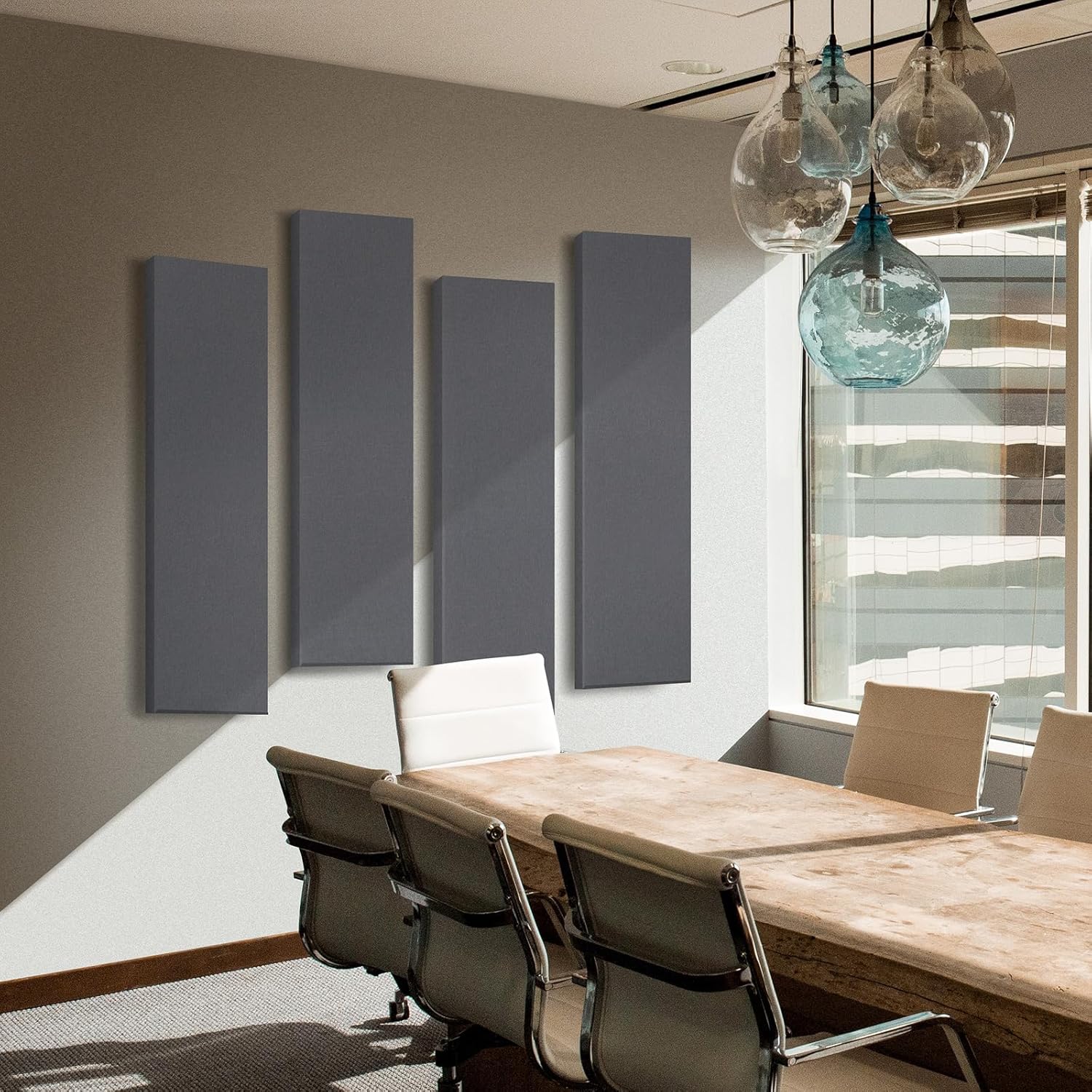 2” Thick Acoustic Panels with Hanging Brackets to the Wall, 2 PCS 47.2” x 11.8” Fiberglass Sound Absorbing Panels for Home Theater Church Office Wall or Ceiling, Medium Grey