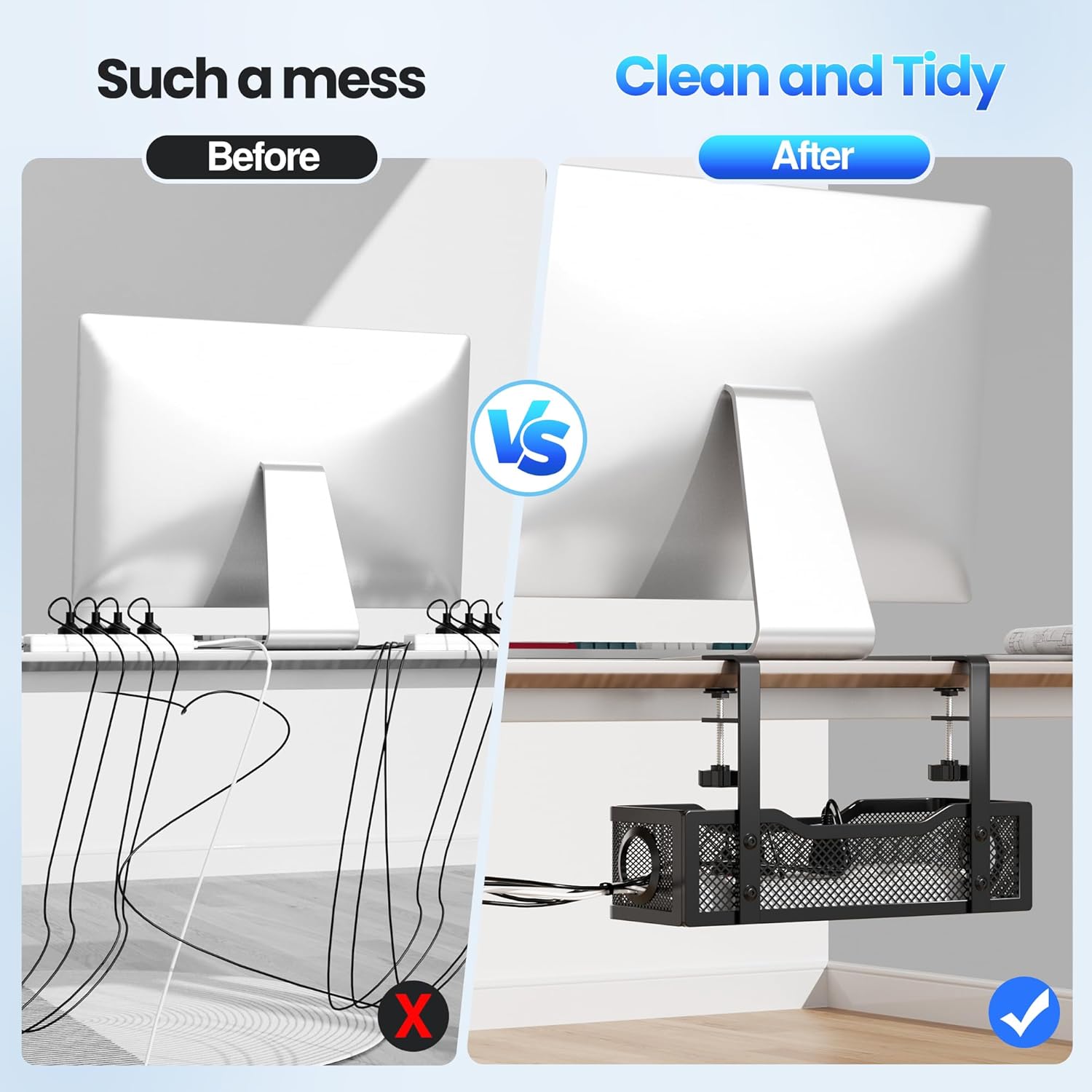 - šššÆš šššØš«šš š šš©ššš- No more mess. No more hanging or tangled wires. Giving you a total wire management under desk. Organizes any data cables, power cords, outlet strips off the floor. You can hide wires from your feet to keep your desks and floors clean and tidy.