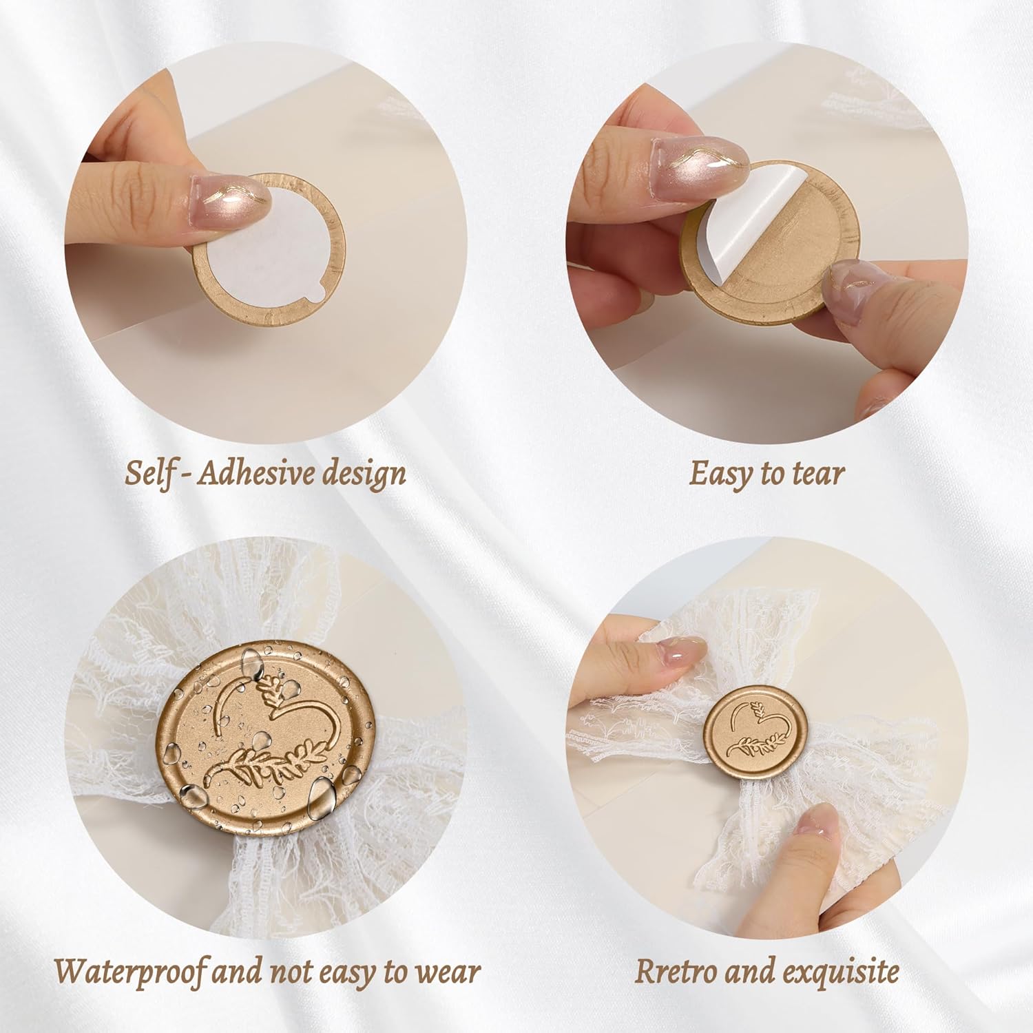 - PACK OF 25 PIECES: Includes 25 pieces of light gold wax stickers, plenty of quantity for your wedding events and creative projects. Add a unique handmade touch to your gift wrap.