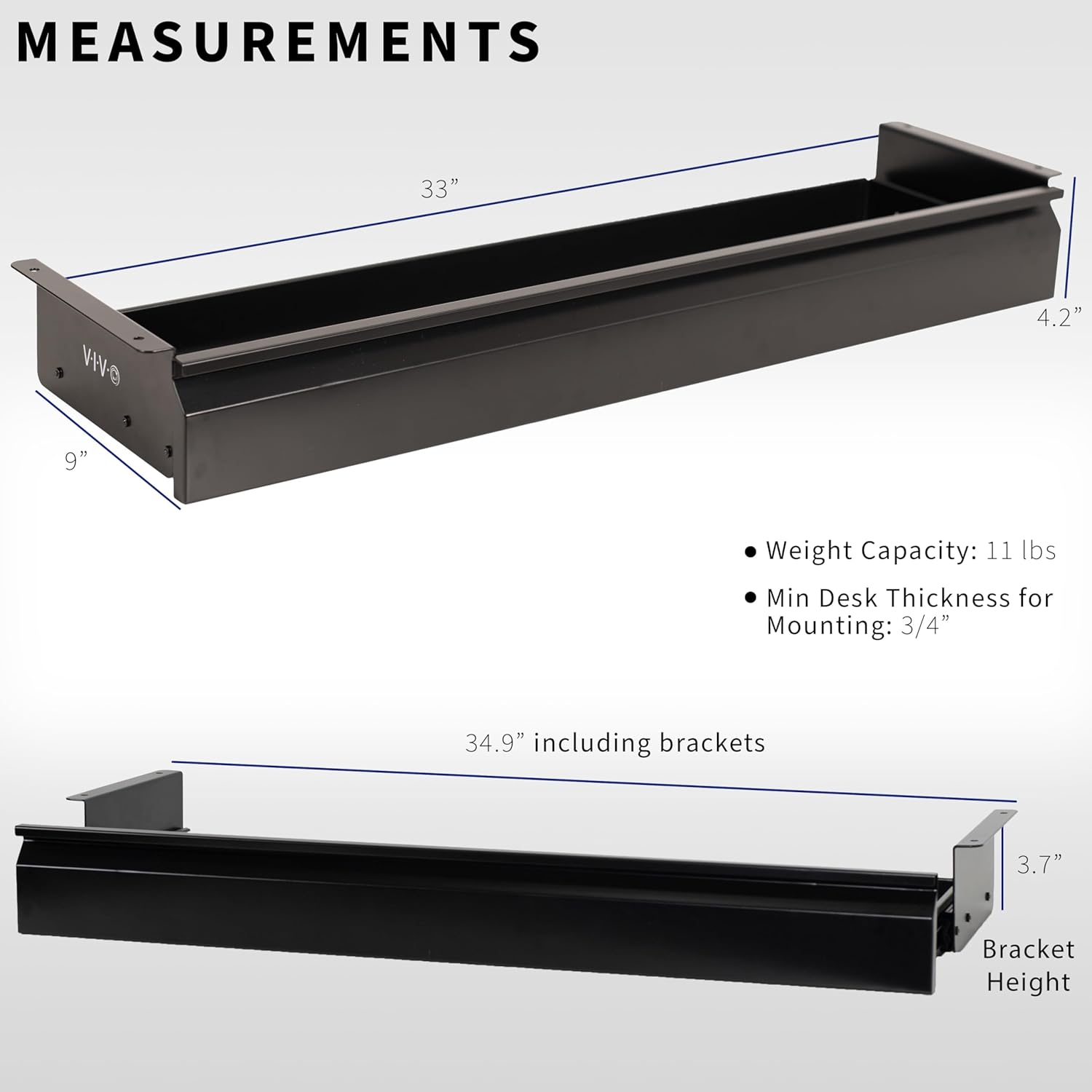 - Extra Long Workspace Organizer: This 33β (34.9β with side brackets) x 9β x 4.2β pull-out drawer keeps your workspace looking organized and professional. Holds paper, writing utensils, electronic devices, office supplies, and more