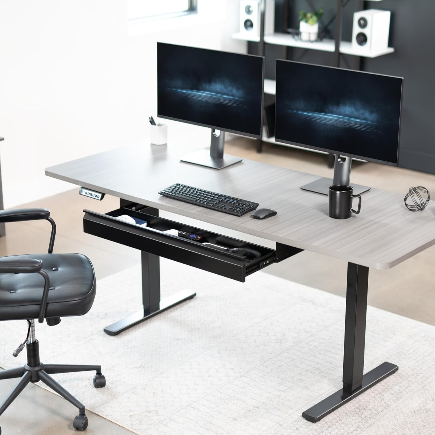 - Under Desk Storage: Sturdy steel drawer mounts to the underside of your desk (at least 3/4β thick) and provides extra storage space for decluttering your area in style. Designed to fit both standing desks and standard fixed-height workstations